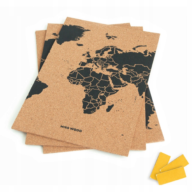 Cork Map Woody World Map Black 60 x 30 см M