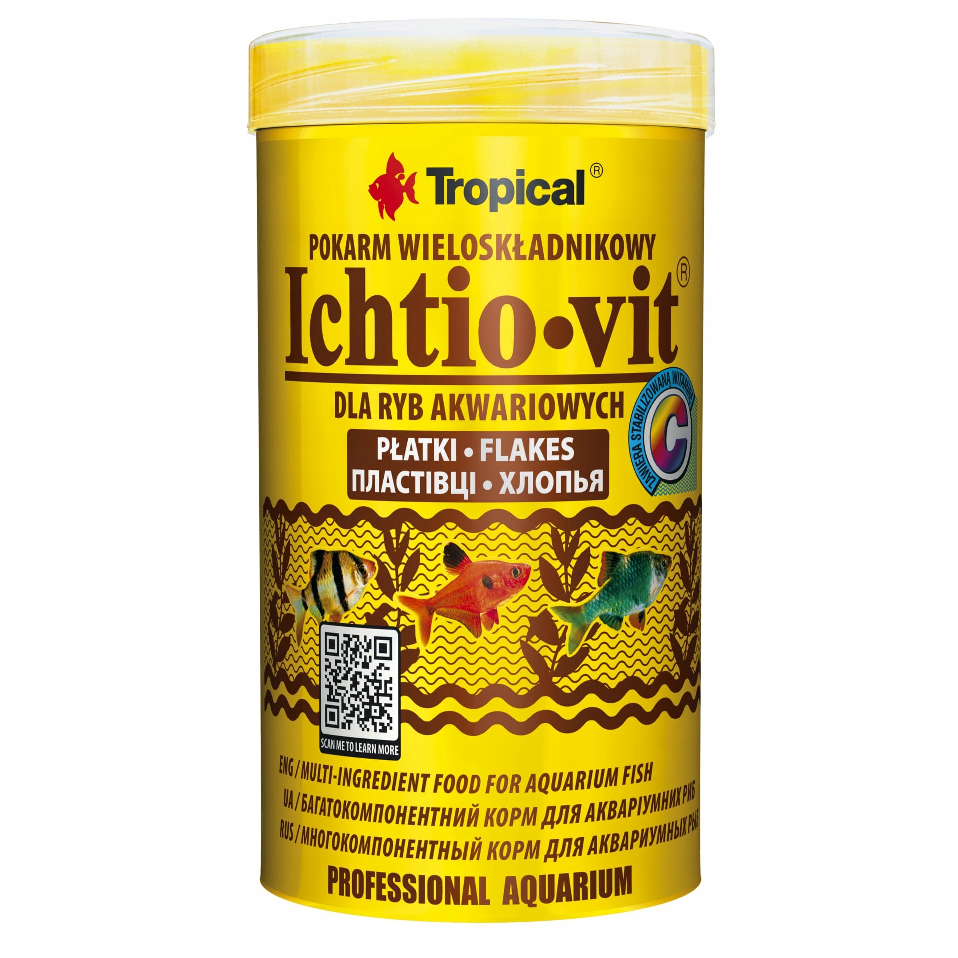 Ichtio-Vit – универсальный корм, который прекрасно работает в многовидовых аквариумах. Его можно кормить каждый день большинству популярных видов всеядных рыб. Для его производства использовались отборные ингредиенты животного и растительного происхождения. При регулярном использовании обеспечивает правильный рост и развитие рыб благодаря правильно сбалансированному составу и добавлению необходимых рыбе витаминов и микроэлементов. Особого внимания заслуживает добавление стабилизированного витамина С, который, помимо прочего, усиливает устойчивость рыб к болезням и ускоряет заживление ран и ссадин.