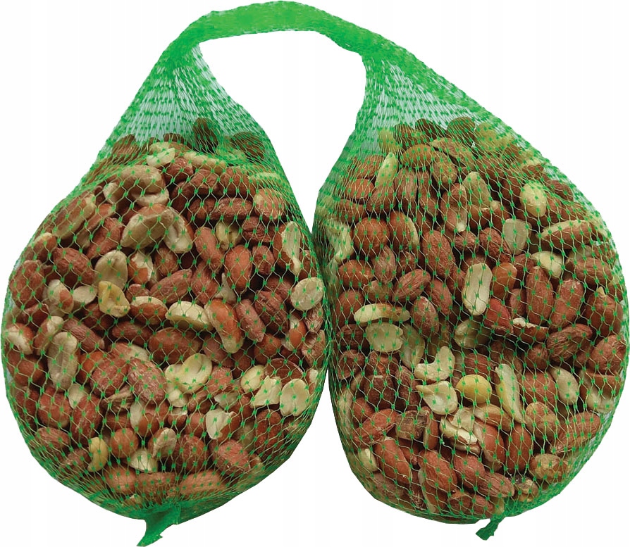 Небланшированный арахис упакован в сетку, которую легко повесить на ветку.
