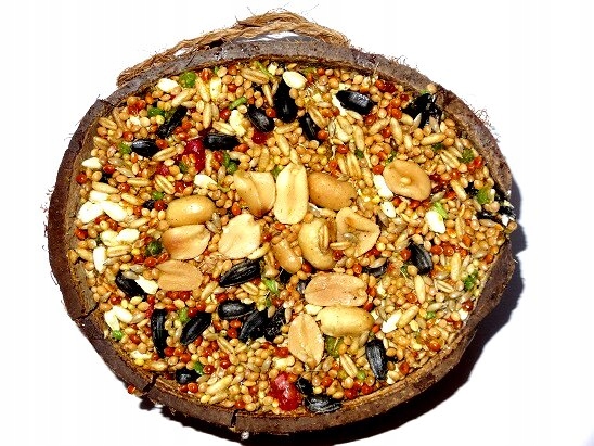 КОРМ КОРМ ДЛЯ ПОПУГАЕВ ПОПУГАИ лакомство в КОКОСЕ для ПТИЦ ЗЕРНОВАЯ КОРМОВКА