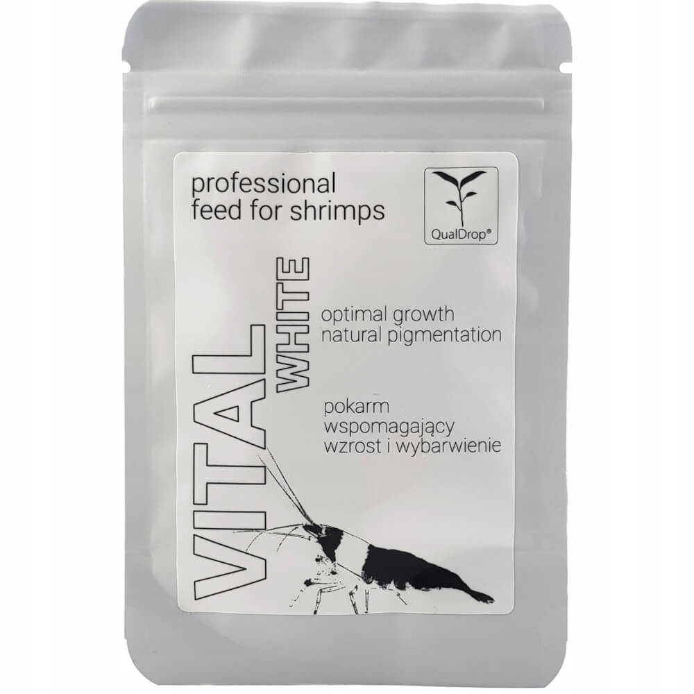 QualDrop Vital White – это ежедневный корм, предназначенный для декоративных креветок с белой пигментацией. Улучшает цвет, подчеркивает и углубляет белый цвет. Он содержит правильно сбалансированные ненасыщенные жирные кислоты (НЖК): докозагексаеновую (ДГК омега-3), эйкозапентаеновую (ЭПК омега-3), арахидоновую (ARA омега-6) и нуклеотиды. Является источником: витаминов и минералов. В состав также входят натуральные экстракты чеснока и шпината, повышающие устойчивость креветок к болезням. Не содержит астаксантина. Обеспечивает оптимальный рост креветок и поддерживает естественную белую пигментацию.