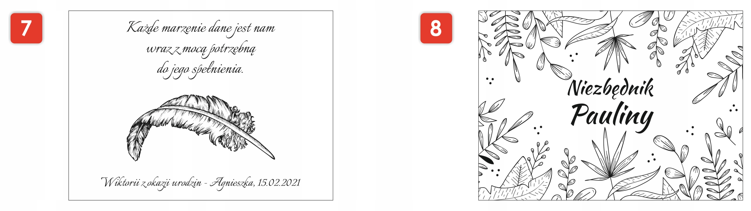 Например. узор №7, цитата без изменений, внизу «Моей дорогой мамочке - Милене»