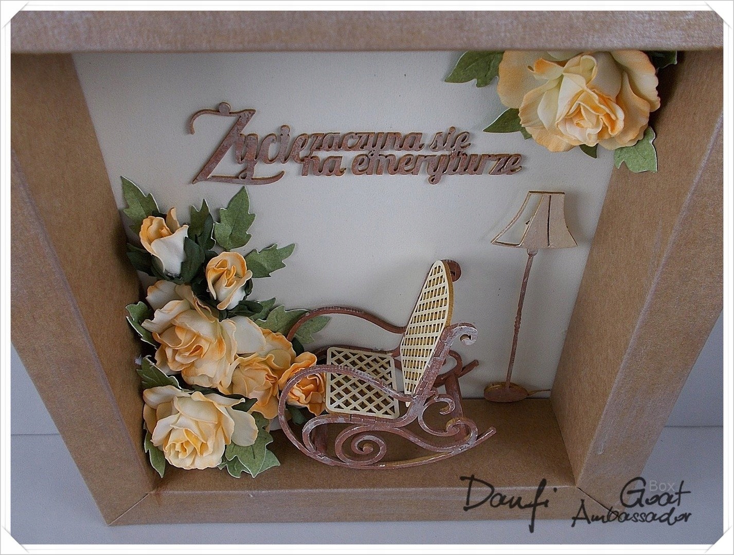 Теневой ящик — это своего рода витрина для демонстрации ценных вещей, поздравительных открыток, альбомов, свидетельств о рождении, парфюмерии, ювелирных изделий и т. д. Теневой короб закрывается прозрачным стеклом из пленки ПВХ толщиной 0,3 мм, также изготовленной на прессе. Имеет очень удобные ручки, благодаря которым его легко вынимать. В собранном виде коробка очень жесткая, не плавает вбок и совершенно не требует склеивания. Вдохновения можно найти в группе GoatBox Inspirations на Facebook.