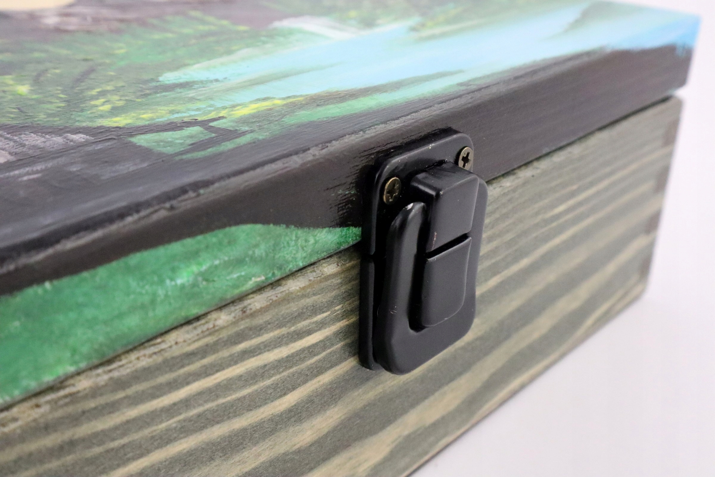 Коробка защищена бесцветным водяным лаком (используется для рисования игрушек), что облегчает его поддержанию чистой.