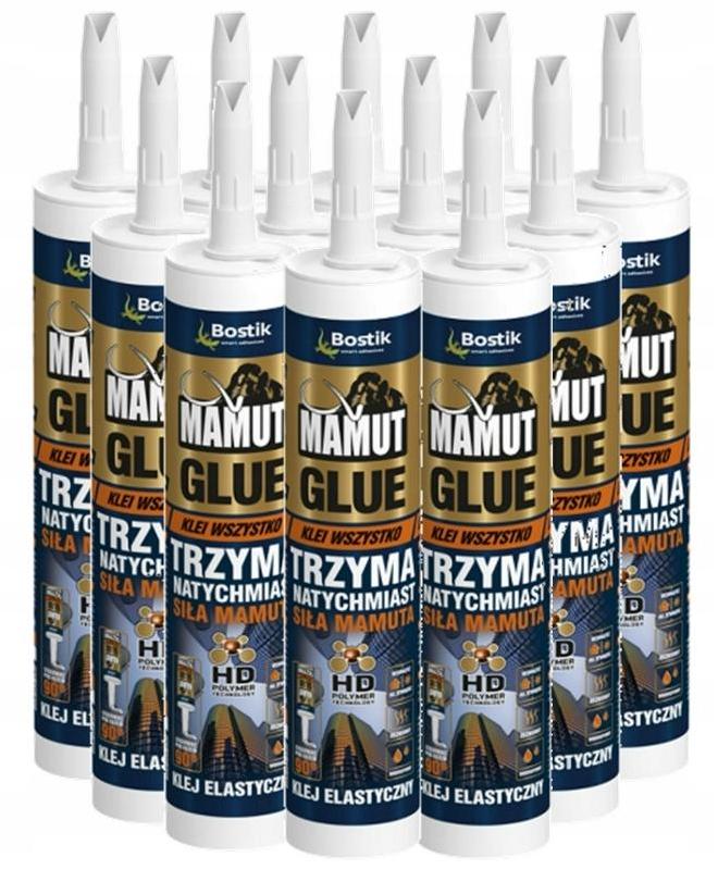 MAMUT GLUE — однокомпонентный, постоянно эластичный, сверхвязкий и густой монтажный клей на основе МС-ПОЛИМЕРА. Предназначен для крепления высоконагруженных элементов в строительстве и промышленности. Обеспечивает мгновенное и прочное сцепление с гладкими и пористыми основаниями внутри и снаружи помещений без необходимости грунтования. Он нейтрален по отношению к основанию и соответствует самым высоким стандартам безопасности для пользователя (сертификат EMICODE EC1 Plus). Используется для приклеивания планок, рам, порогов, столярных изделий (столешницы, полки, фасады), подоконников, карнизов, облицовки, изоляционных материалов, зеркал, маскировки, наличников, досок, экранов, панелей и кровельных материалов (например, листового металла, керамики или черепица).цемент)