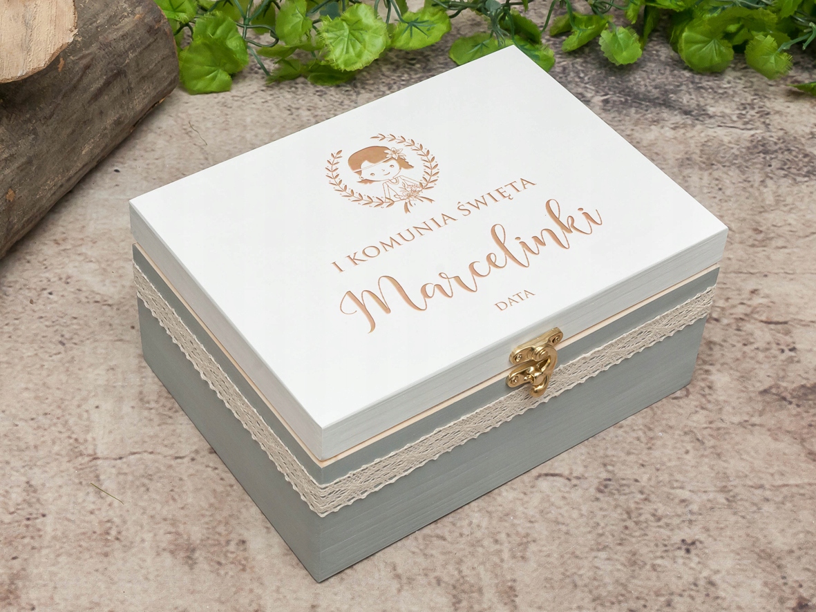 Деревянная шкатулка - сувенир к Первому Причастию с личным посвящением.