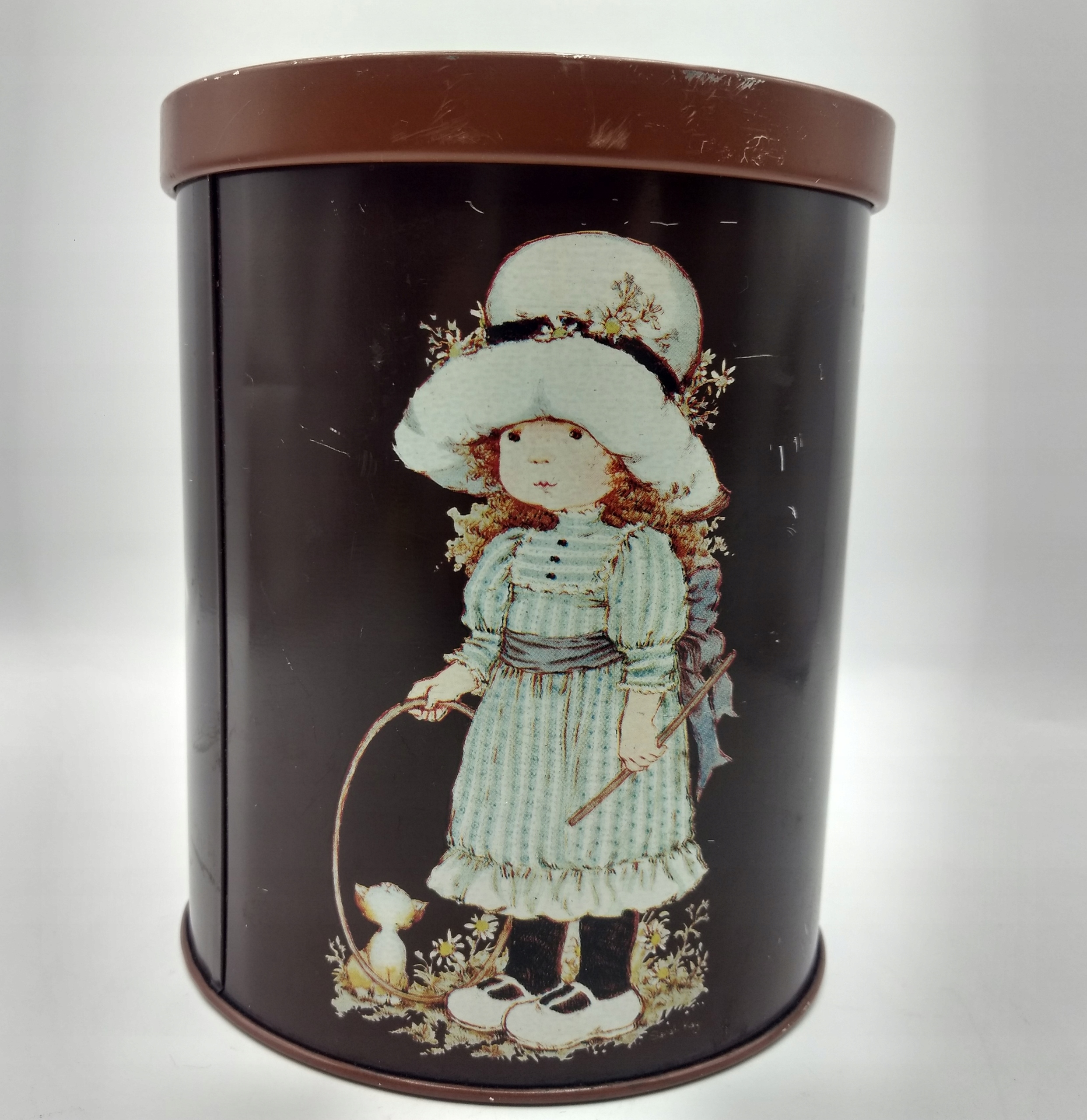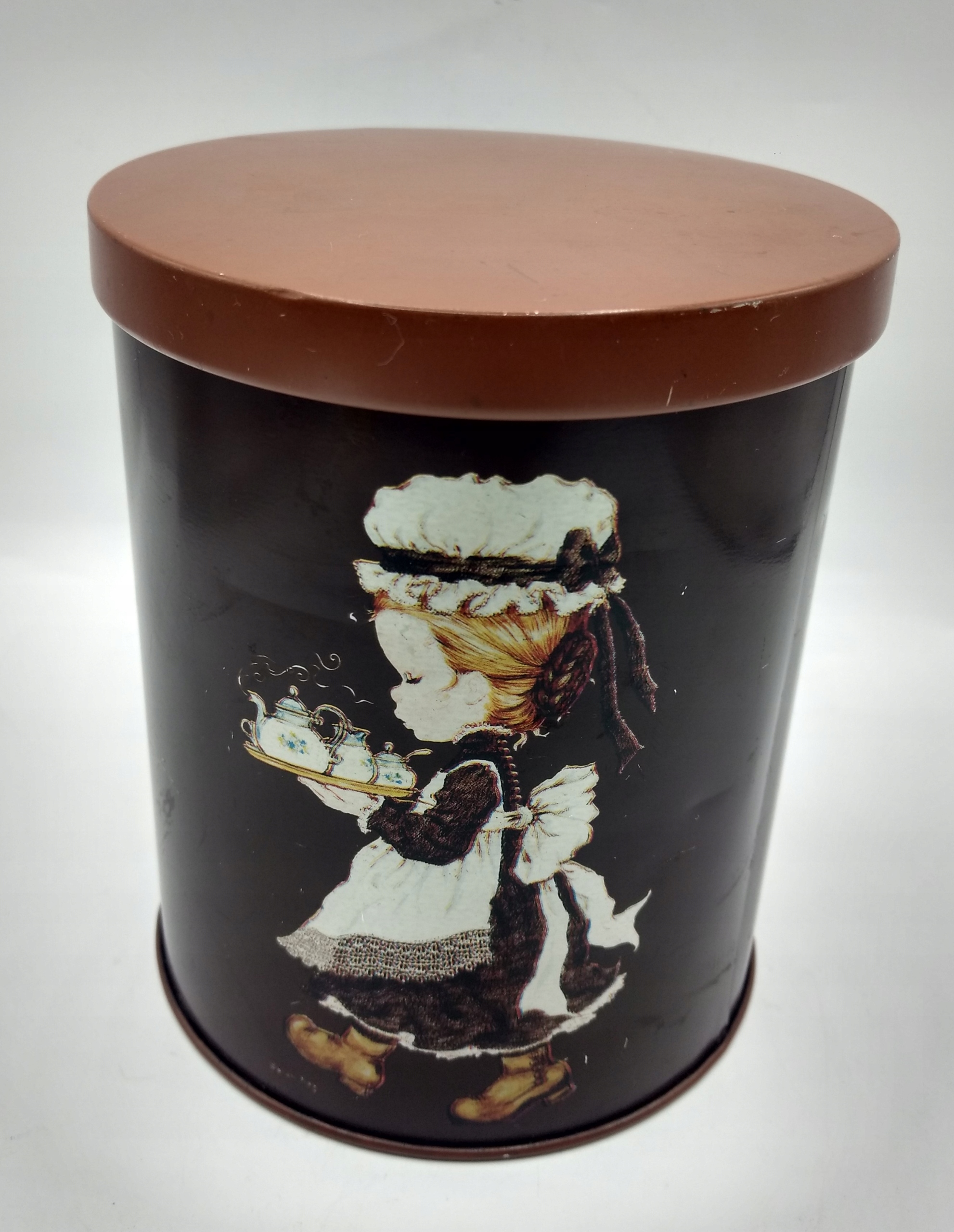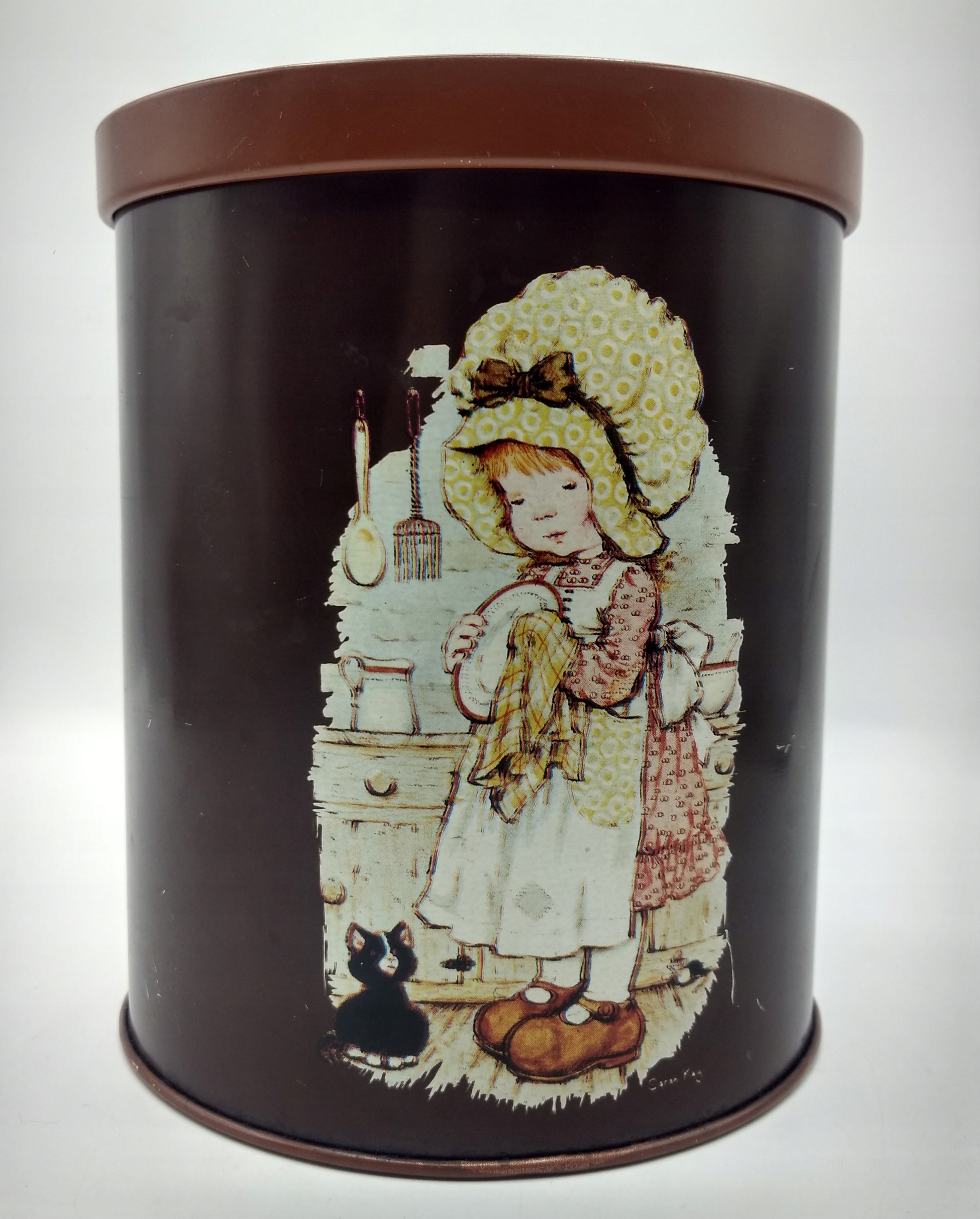 - предмет старый и его видно, кое-где есть микро вмятины, царапины, налеты коррозии, это только добавляет шарма жести, все это дополняется приятными цветами и красивым мотивом девушек с котами и чашками,