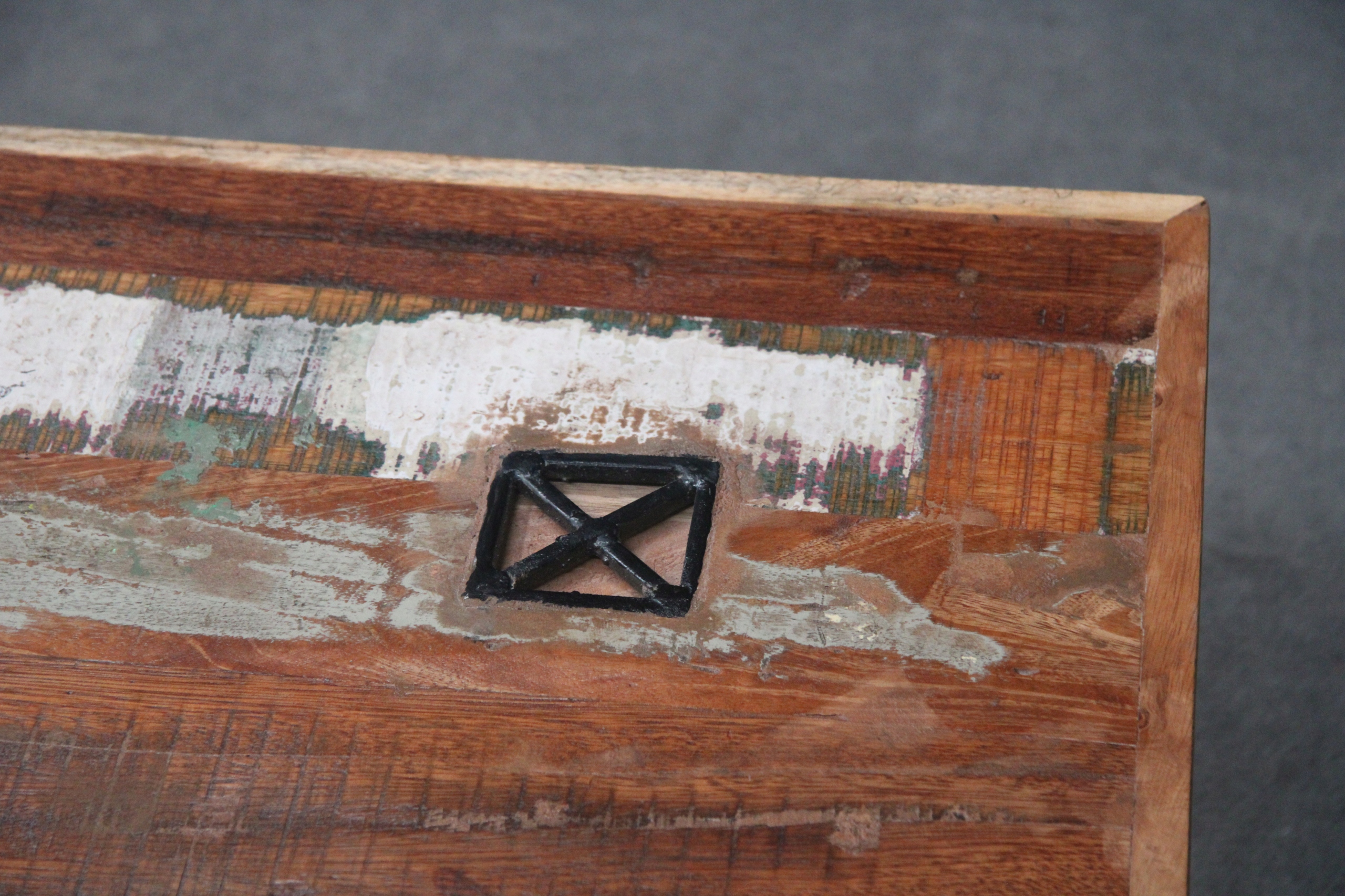 • Скамейка/Сундук новый. Серия изготовлена ​​вручную полностью из индийской переработанной древесины. В основном используется древесина акации и манго. Благодаря уникальной фактуре дерева и разнообразной цветовой гамме он впишется в любой интерьер и идеально подойдет для прихожей. Цвета, металлическая отделка и структура древесины (мелкие трещинки, дырочки, неровности, которые специально сделаны) подчеркивают индивидуальность мебели.