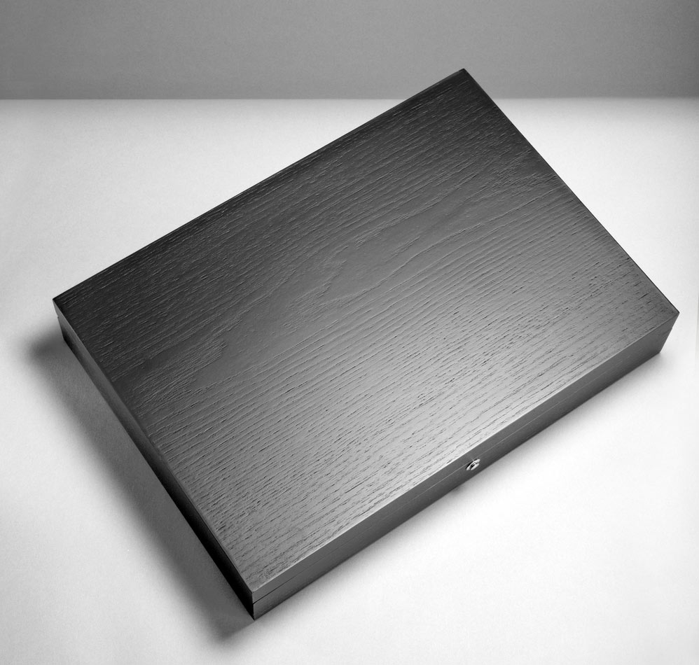 Эксклюзивная деревянная шкатулка для 18 часов, добротное немецкое качество изготовления. Дерево рядом с дубом. Цвет черный - полуматовый.