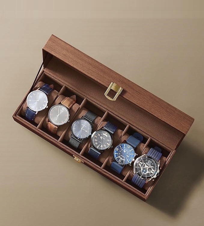 • 6 отделений: Каждое из них облицовано мягким материалом, защищающим часы от царапин и повреждений.