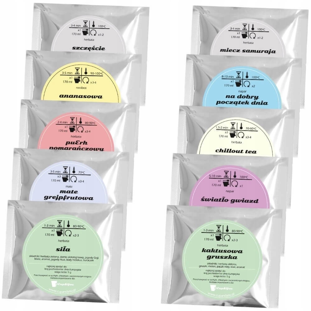 10 разных вкусов чая, а именно: