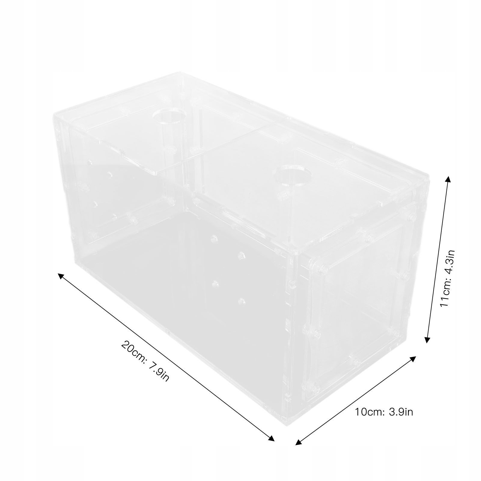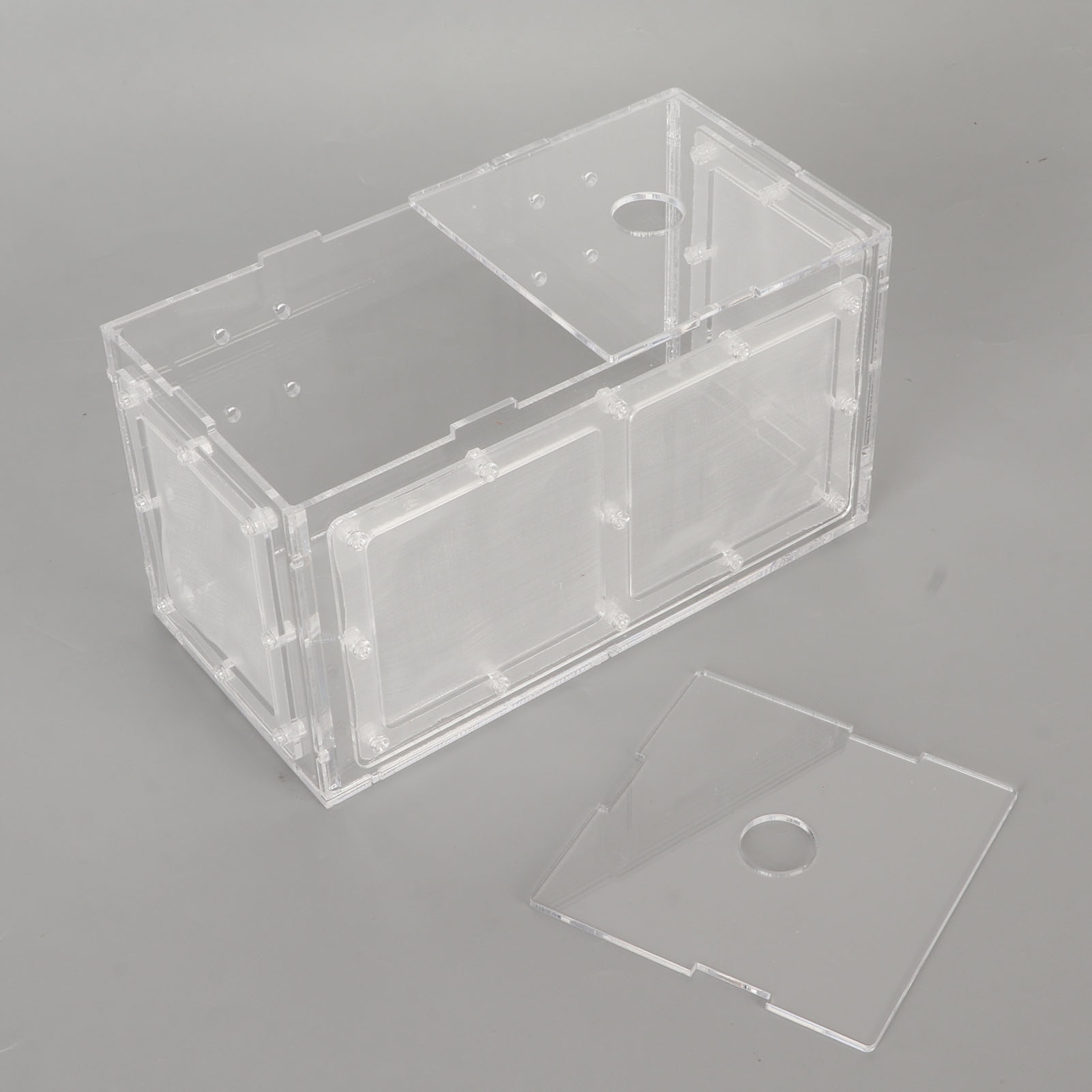 2. С крышкой: контейнер для изоляции рыб с прозрачной акриловой крышкой, предотвращающей вытекание икры из контейнера и защищающей новорожденных рыб.