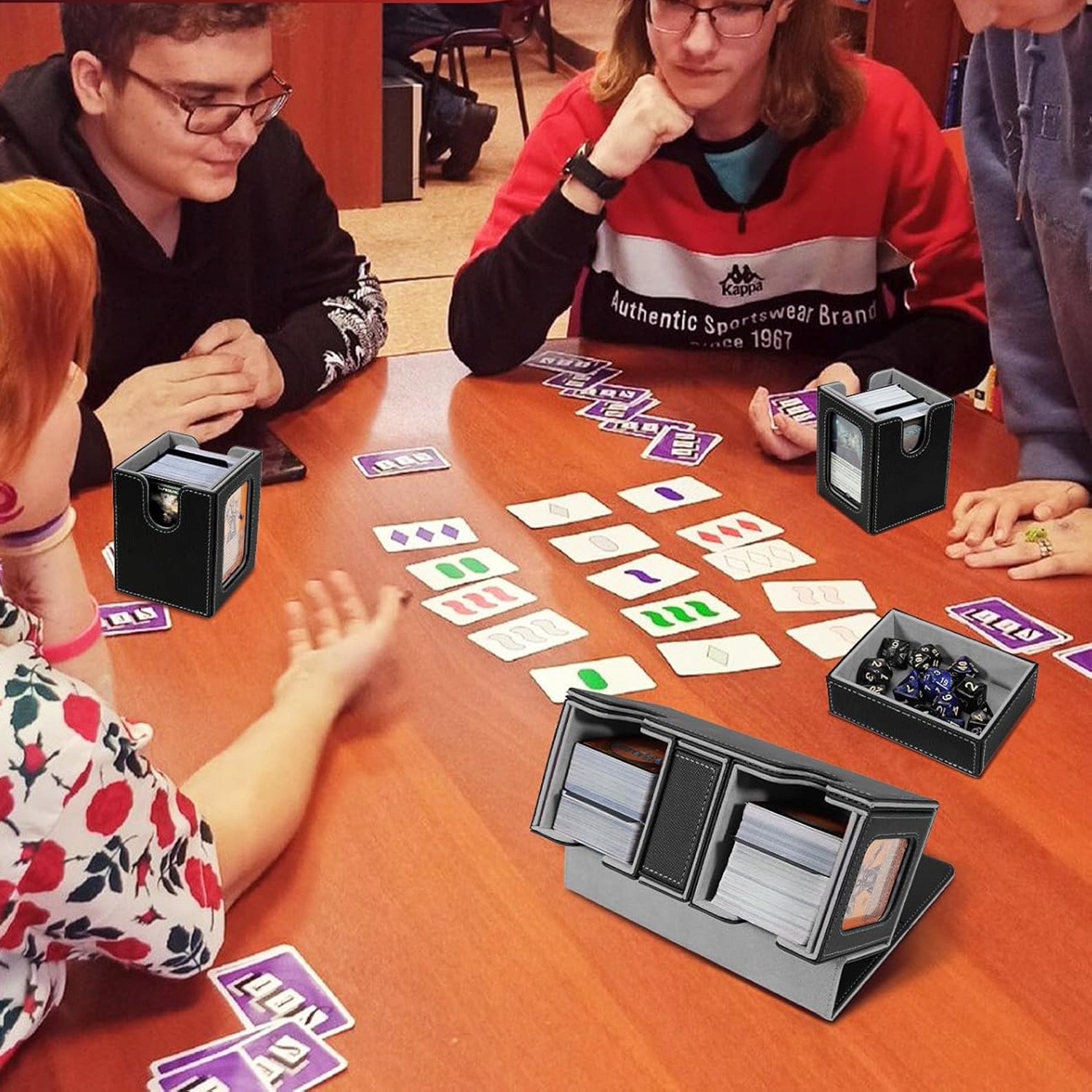 ♠️♣️УНИКАЛЬНЫЙ ДИЗАЙН: Колода Magic Commander с двумя окошками, через которые можно пометить коробку с любимой картой, чтобы увидеть, какая колода находится внутри, не открывая ее. Он складывается в 2 отдельные коробки для карт и 1 коробку для игральных костей.