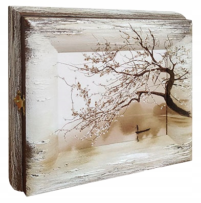 Ящик для ключей, Сакура, вешалка, дерево, картина, украшение на стену