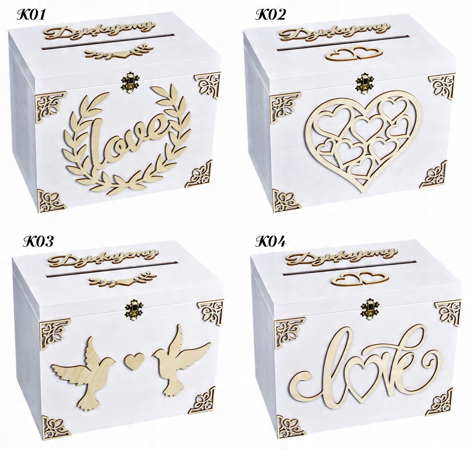 В верхней части коробки расположена декоративная надпись «Спасибо», отверстие для конвертов и один из следующих декоров на ваш выбор.