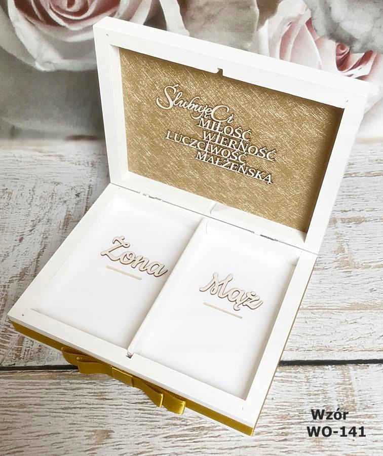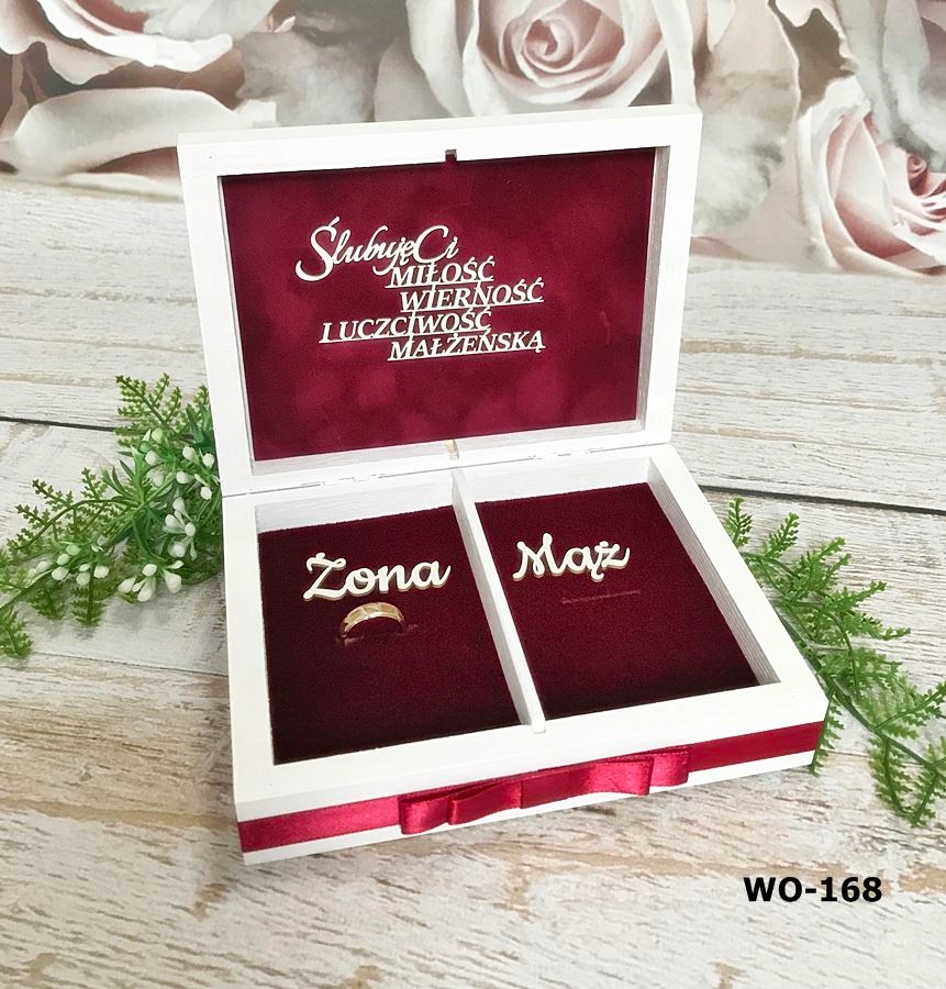 После покупки укажите цвет ленты-бантика и рисунок отделки коробки для обручальных колец внутри