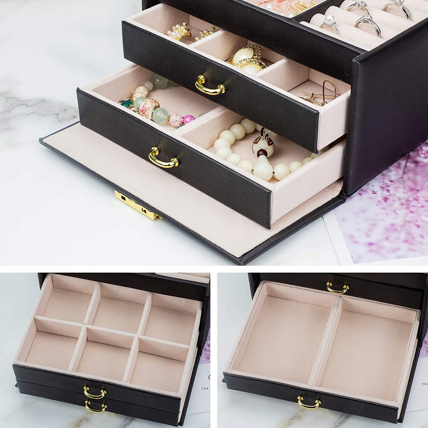 Элегантная ювелирная коробка - черный с бежевым интерьером