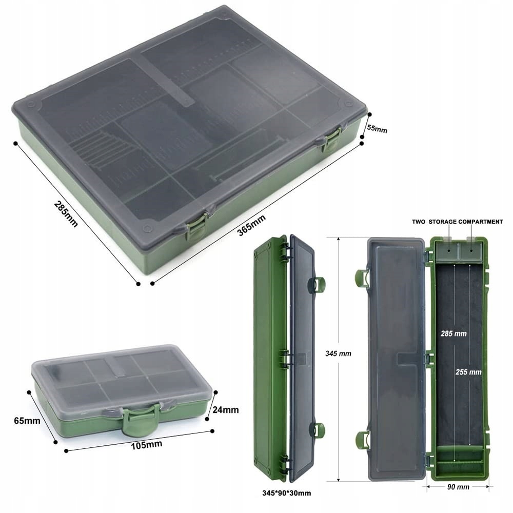 Прочный пластик, ударопрочный, прочные петли, прочная застежка, возможность подогнать коробку под свои нужды с помощью входящих в комплект разделителей (четыре больших фиксированных + 2 подвижных - 1 средний и 1 маленький)