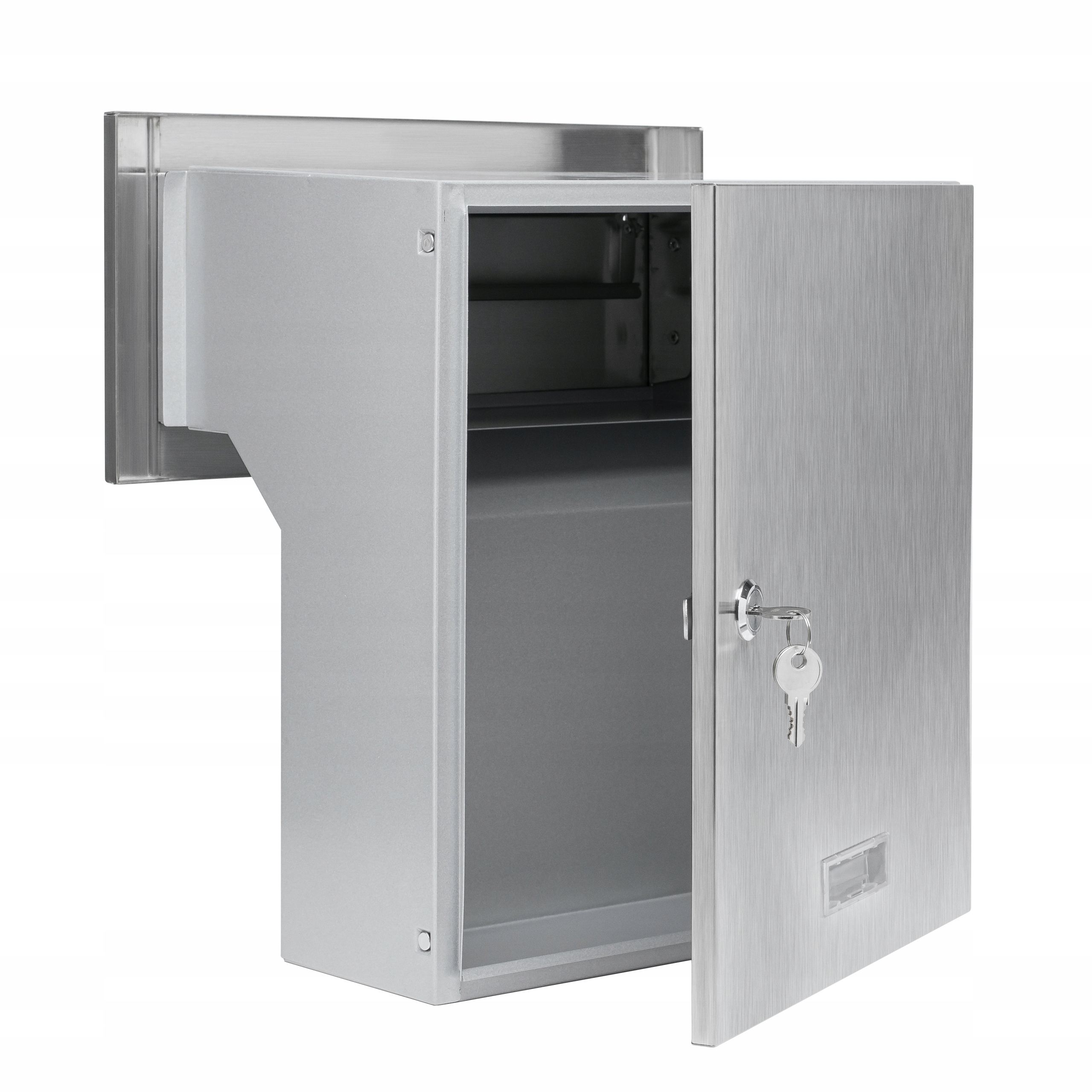 - Фронт с фронтом с лоскутным клапаном и дверью коррекций, сделанных из стали стали SUS304, бухта, изготовленного из оцеленных улиц, серебряного порошкового лака, что гарантирует высокую устойчивость к погодным условиям.