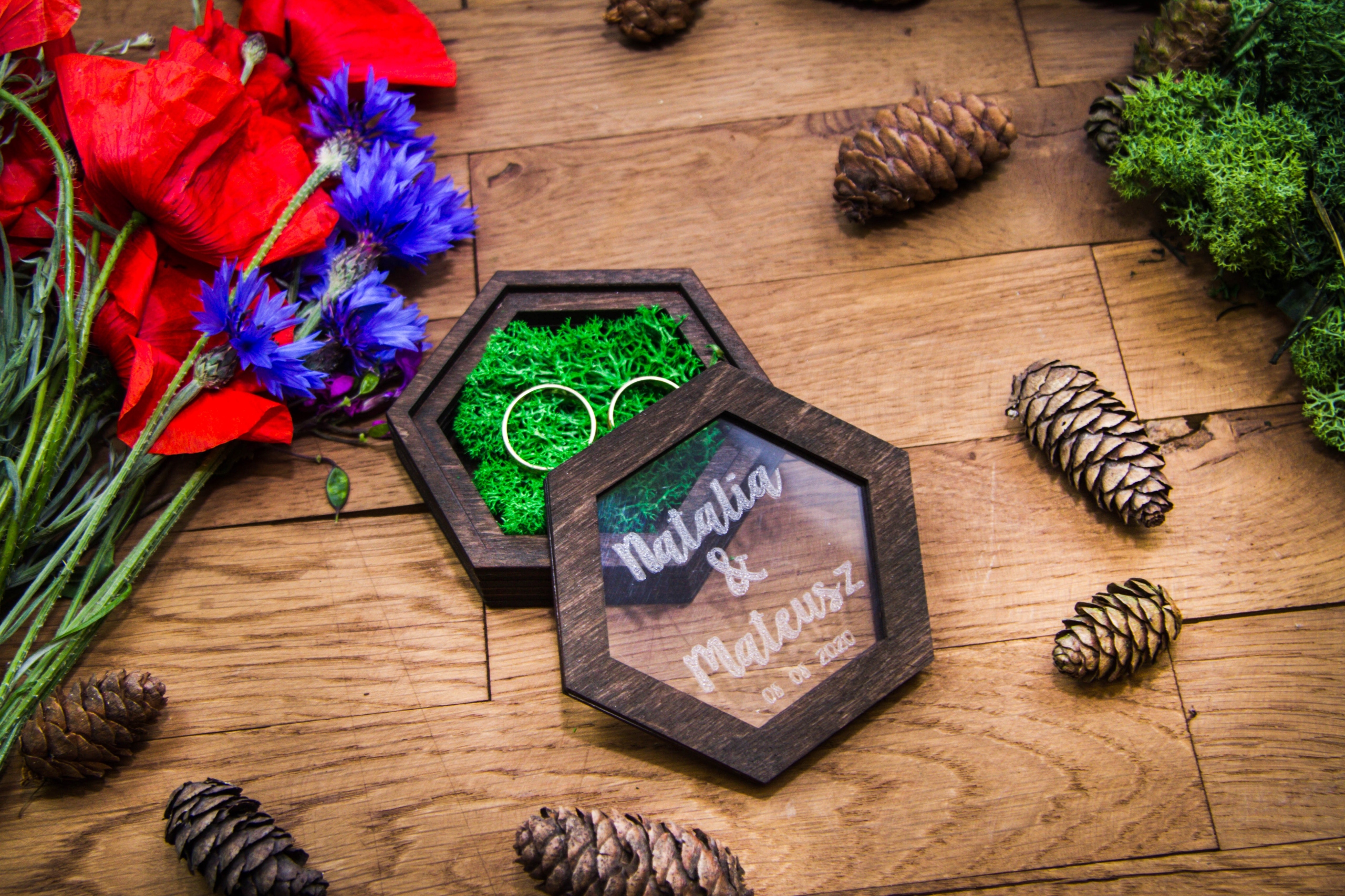 Коробка для обручальных колец шкатулка с окном мох