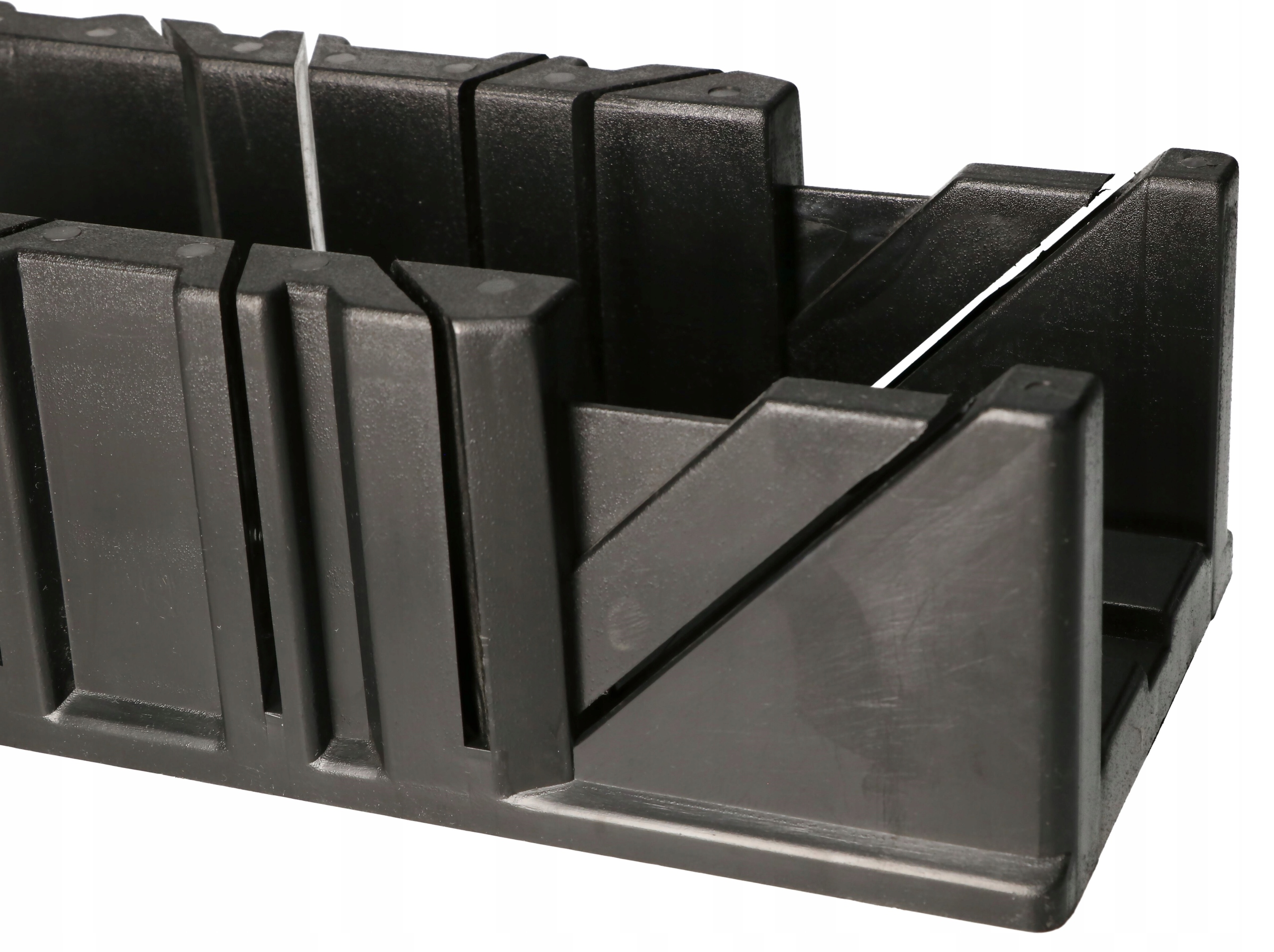 Изделие было разработано для максимальной точности и удобства использования. Оснащенный специальными угловыми пазами, короб позволяет резать доски под углами 22,5, 45 и 90 градусов. Эти точно профилированные канавки обеспечивают устойчивость пильного полотна, что позволяет выполнять точные пропилы без риска смещения инструмента.