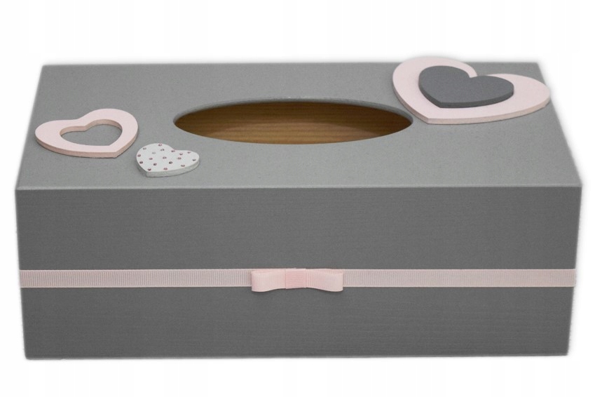 <р>4. Цвет коробки: сверху белый, снизу розовый. Серая лента. Верх украшен сердечками серого и розового цвета. Плюс розовые цирконы.