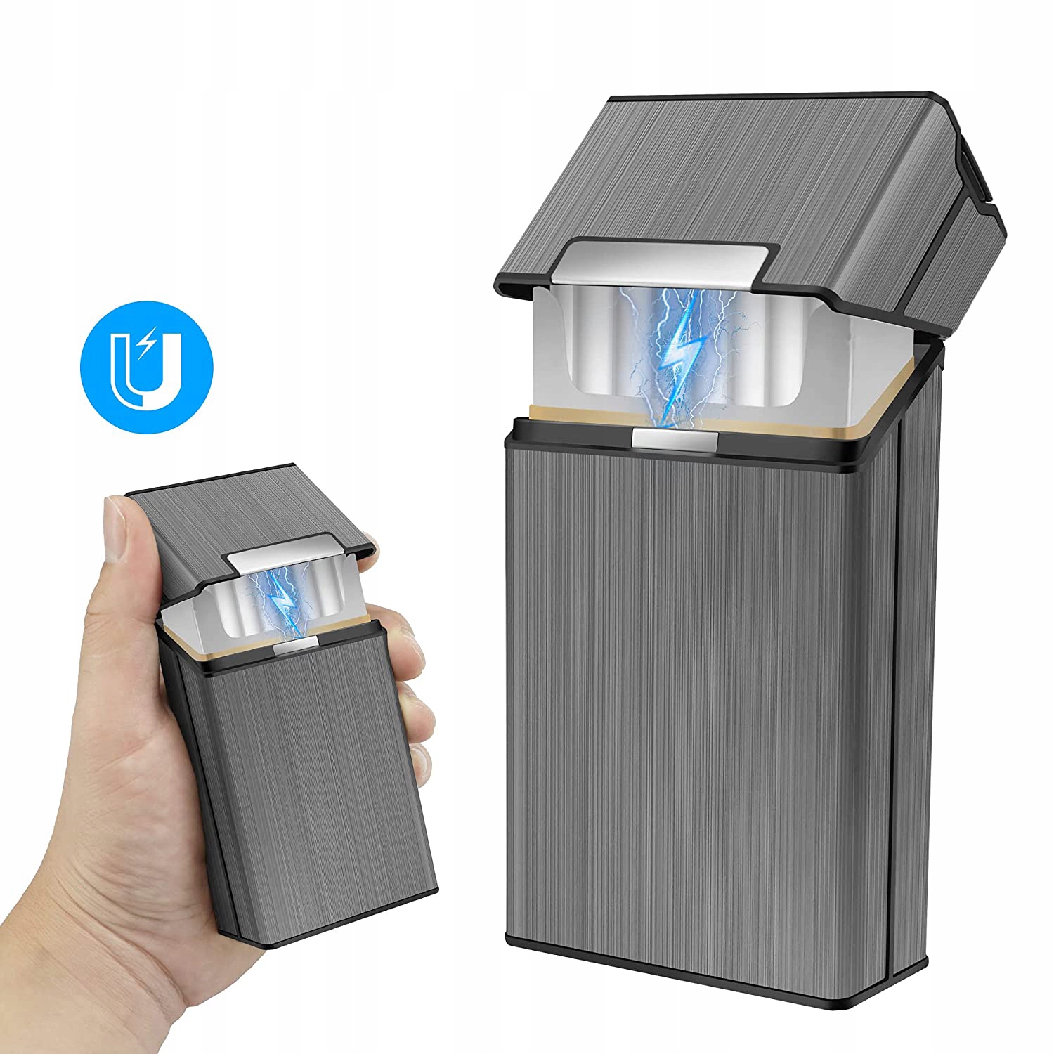 🚬🚬🚬 【Легко в использовании】 Магнитная крышка запечатана небольшим магнитом, встроенным в дымовую крышку. Металлическая коробка после сигарет очень легко открыть и закрывать, что предотвращает выпадение сигарет.