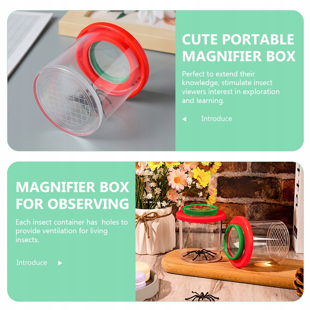 Ищете браузеры насекомых? Это увеличивающийся ящик для насекомых из АБС, ПС, ПММА. Безопасный и прочный контейнер для увеличения насекомых — идеальный инструмент для кормления насекомых. Крышка увеличительной коробки для насекомых оснащена увеличительным стеклом, позволяющим рассмотреть насекомых в деталях.