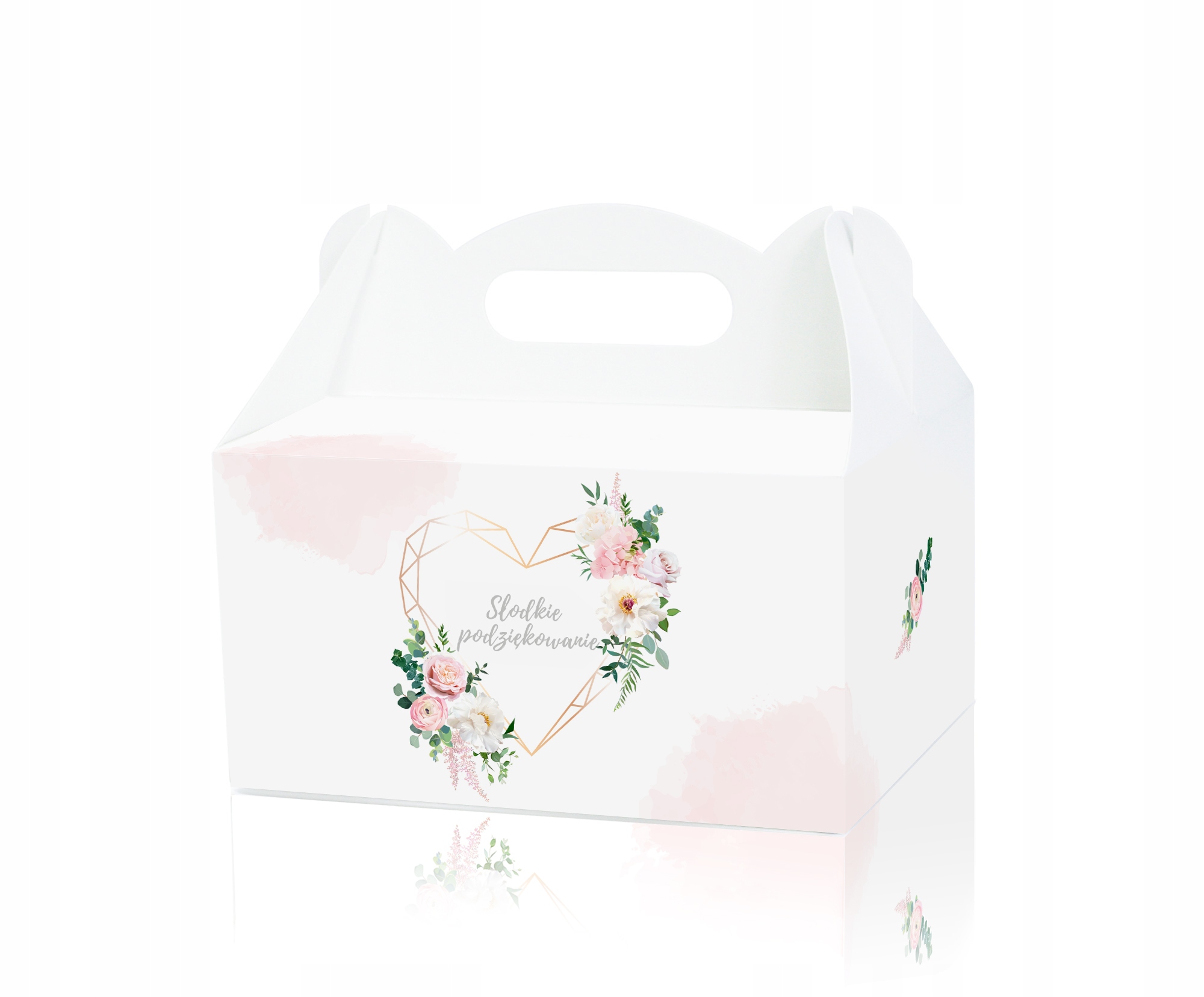 - аккуратная ручка облегчает транспортировку и передачу коробок гостям