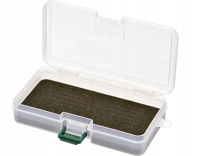 Маленькая коробка со специальной, очень прочной пеной с разрезами вместо отсеков. Мы рекомендуем их для хранения искусственных мух, мормисзека, призовочных или небольших вращений.
