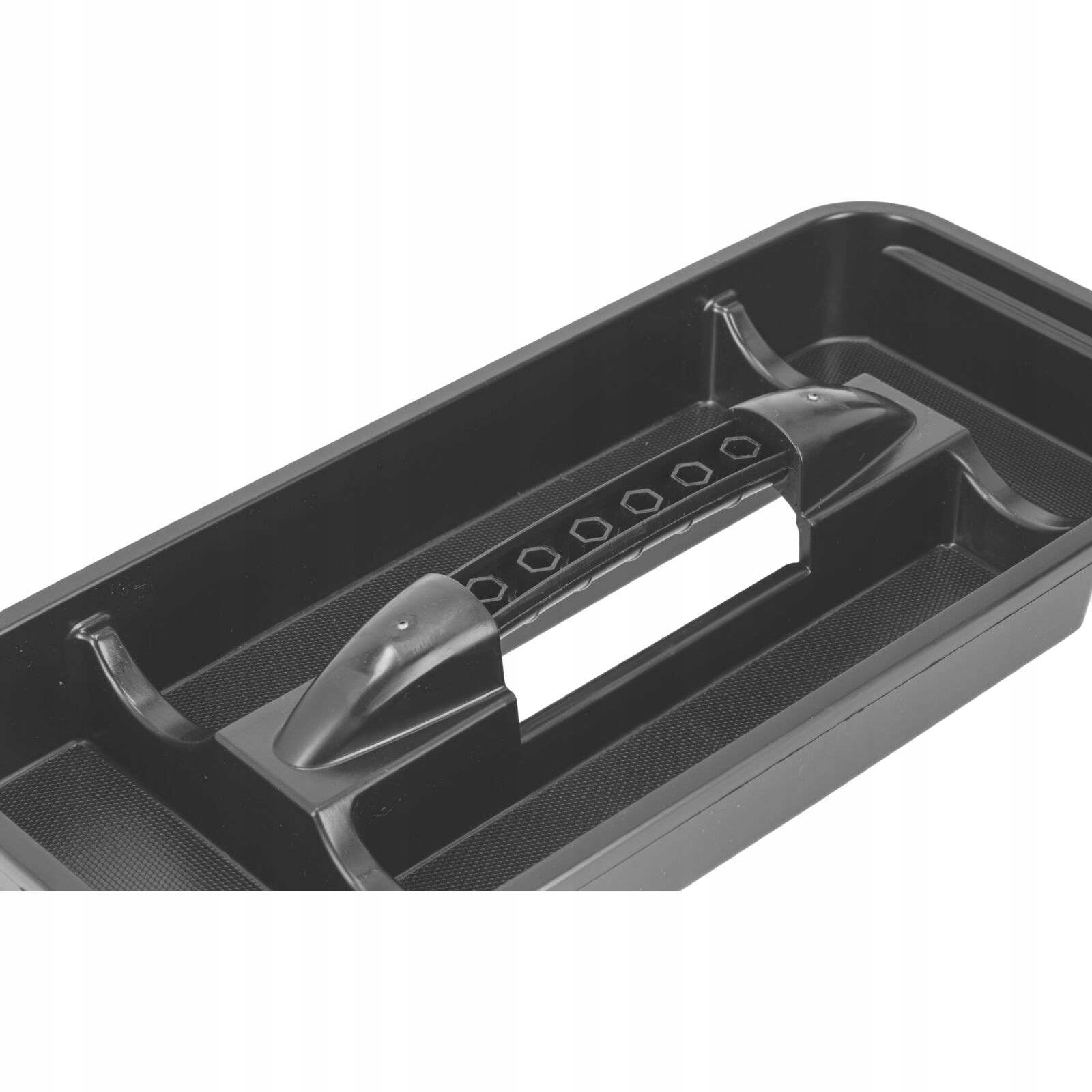 Его крышка была оснащена двумя встроенными организаторами, что позволяет легкий доступ к наиболее часто используемым безделушкам и позволяет вам держать порядок внутри коробки. Прочное пластиковое крепление ABS гарантирует безопасность хранимых инструментов, а эргономическая ручка обеспечивает удобство во время транспорта.