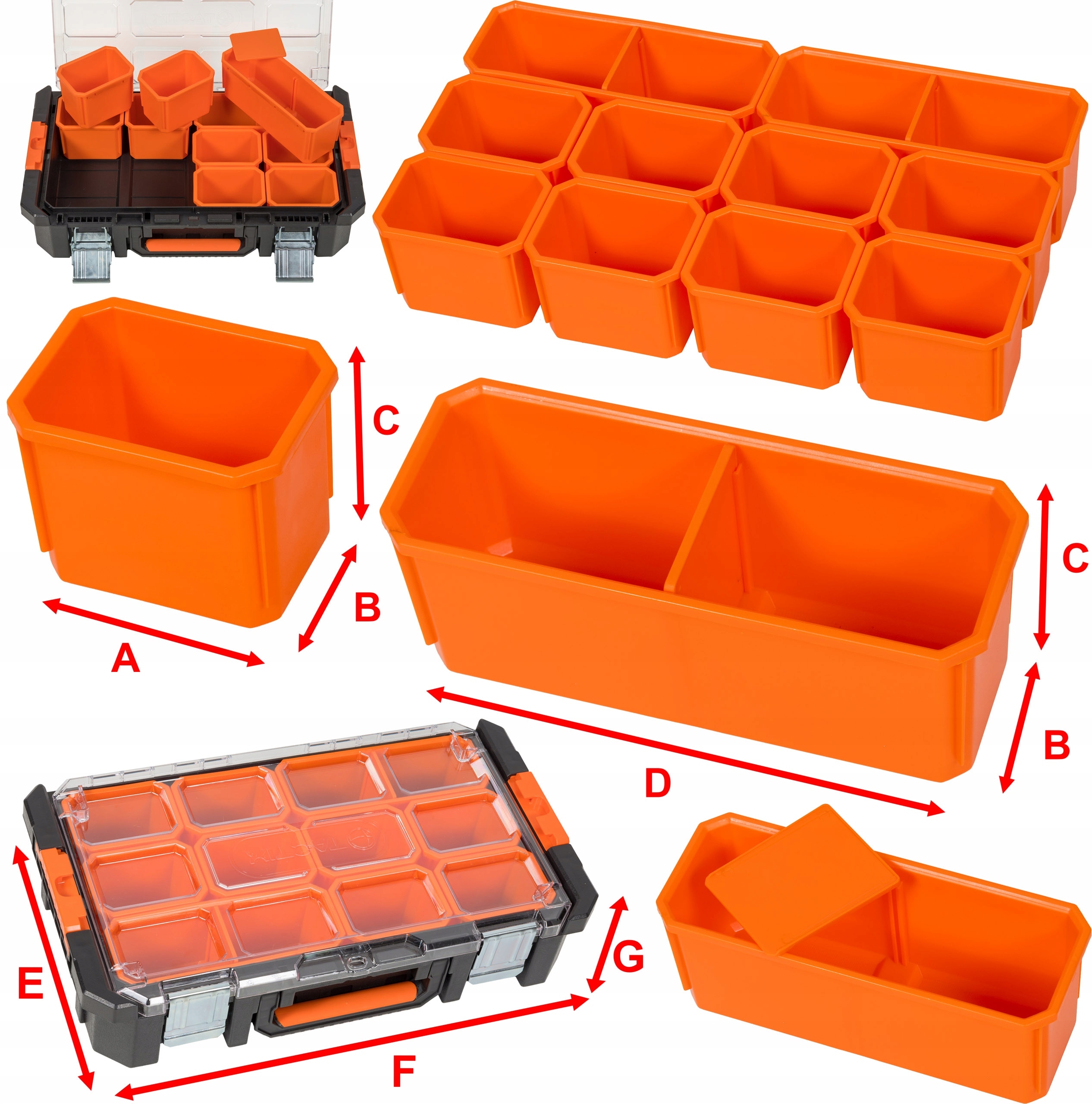 Практичный портативный органайзер в виде чемодана с 8 контейнерами меньшего размера и 2 контейнерами большего размера для мелких аксессуаров, например, винтов, булавок, электронных компонентов, и т. д., имеет прозрачную, устойчивую к повреждениям крышку из поликарбоната, позволяющую просматривать содержимое органайзера, не открывая его.