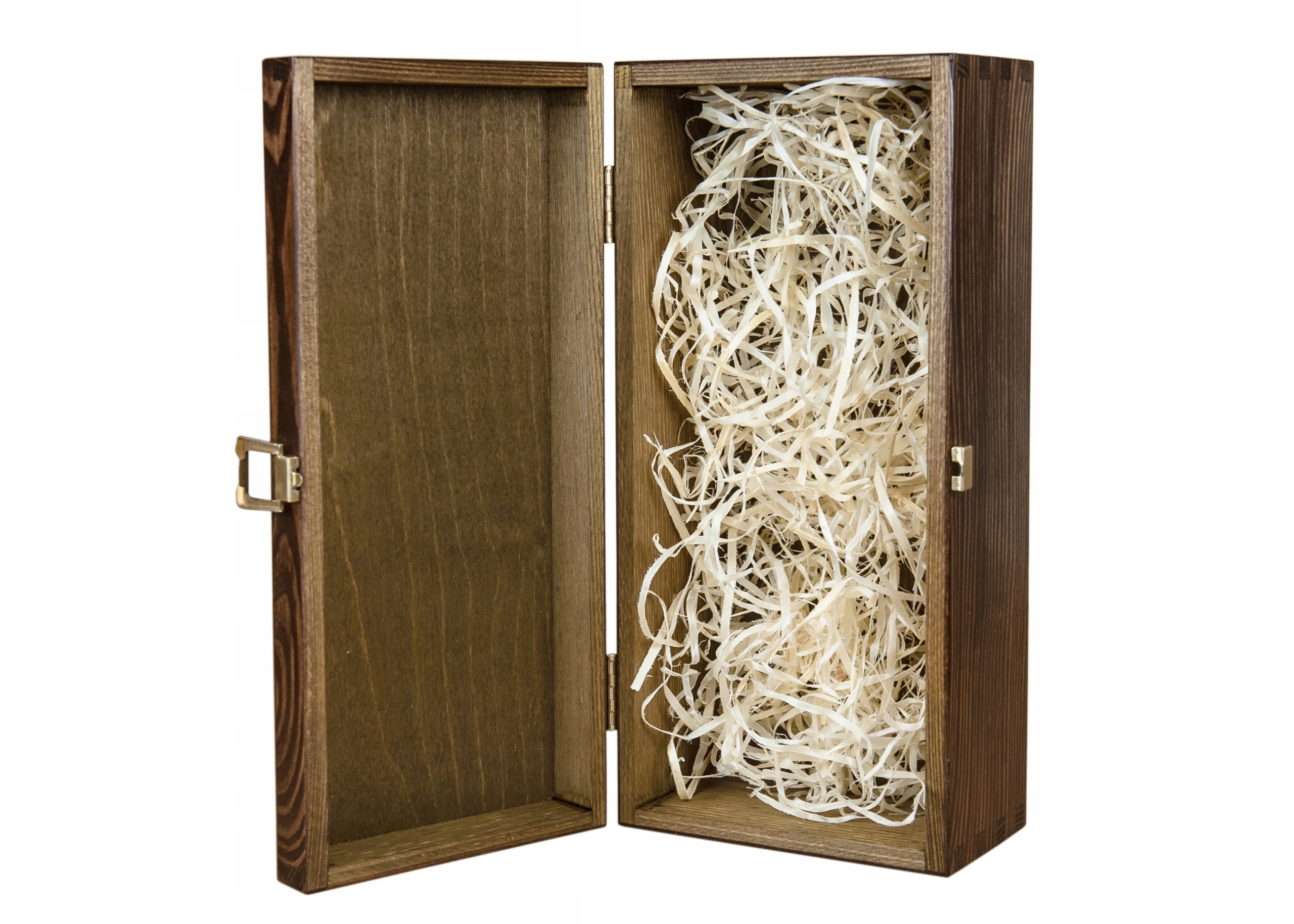 Прикрепите к каждой купленной коробке - заполнение в виде деревянной шерсти (деревянное сено). Заполняя коробку, алкоголь будет выглядеть красиво и будет защищен для хранения.