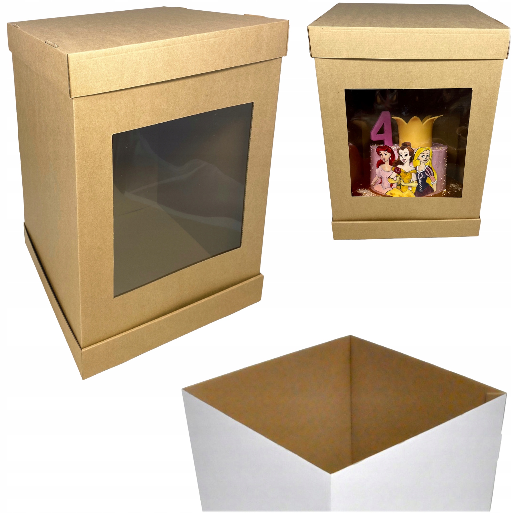 5X Упаковка для многослойного торта 31х31х45 см с крафт-окошком - Качество имеет значение! ⭐⭐⭐⭐⭐