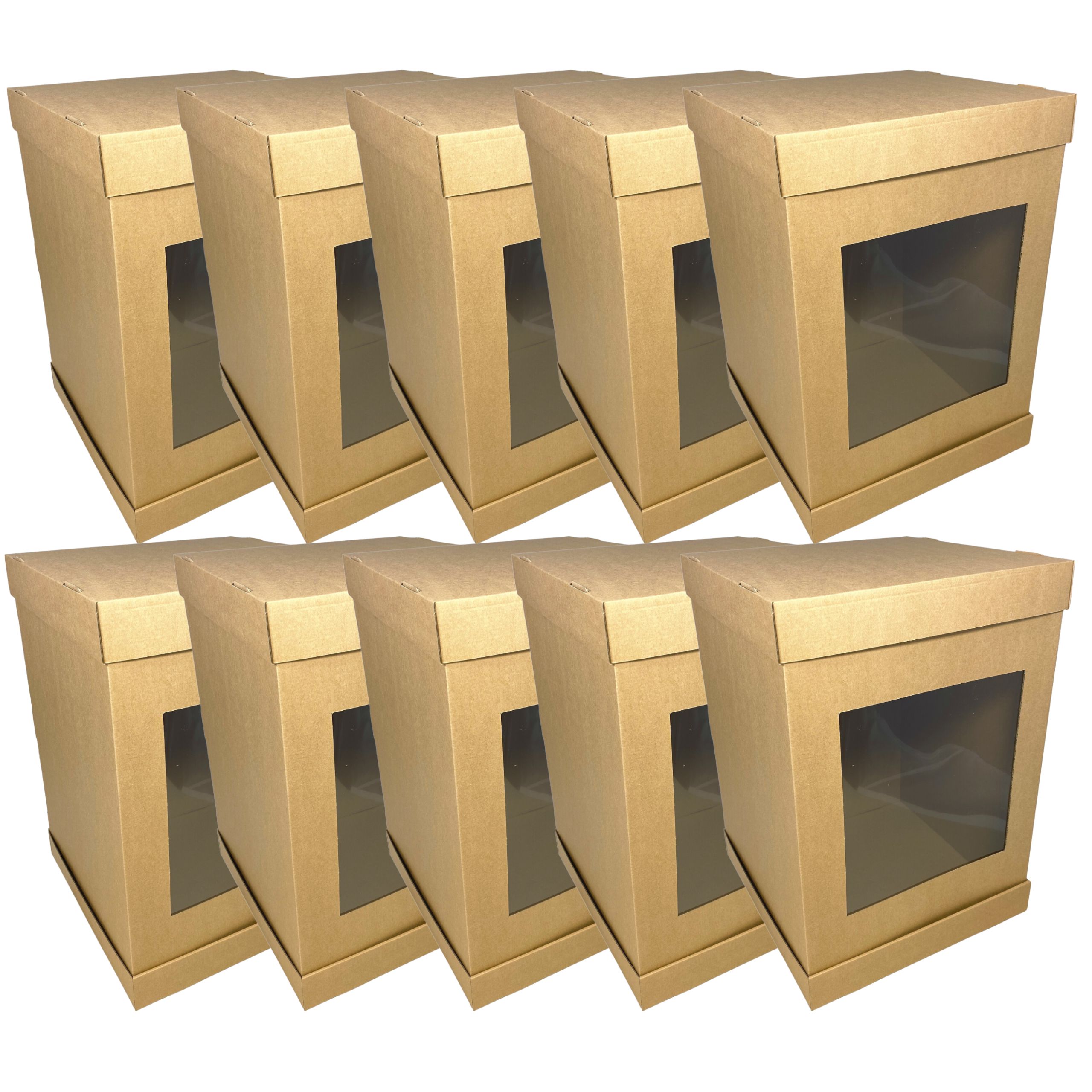 10x Упаковка для многослойного торта 31х31х45 см с крафт-окошком - Качество имеет значение! ⭐⭐⭐⭐⭐