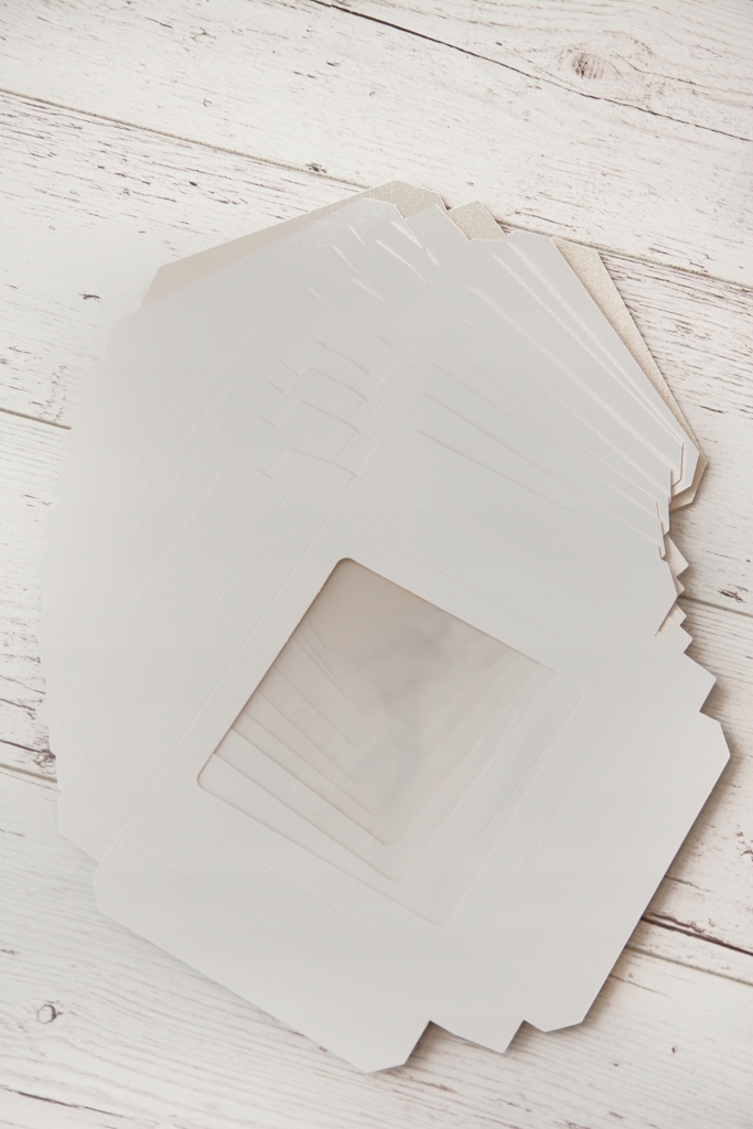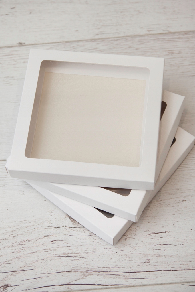 Элегантная декоративная коробка с окошком из прочного белого картона размерами 15×15×2 см.