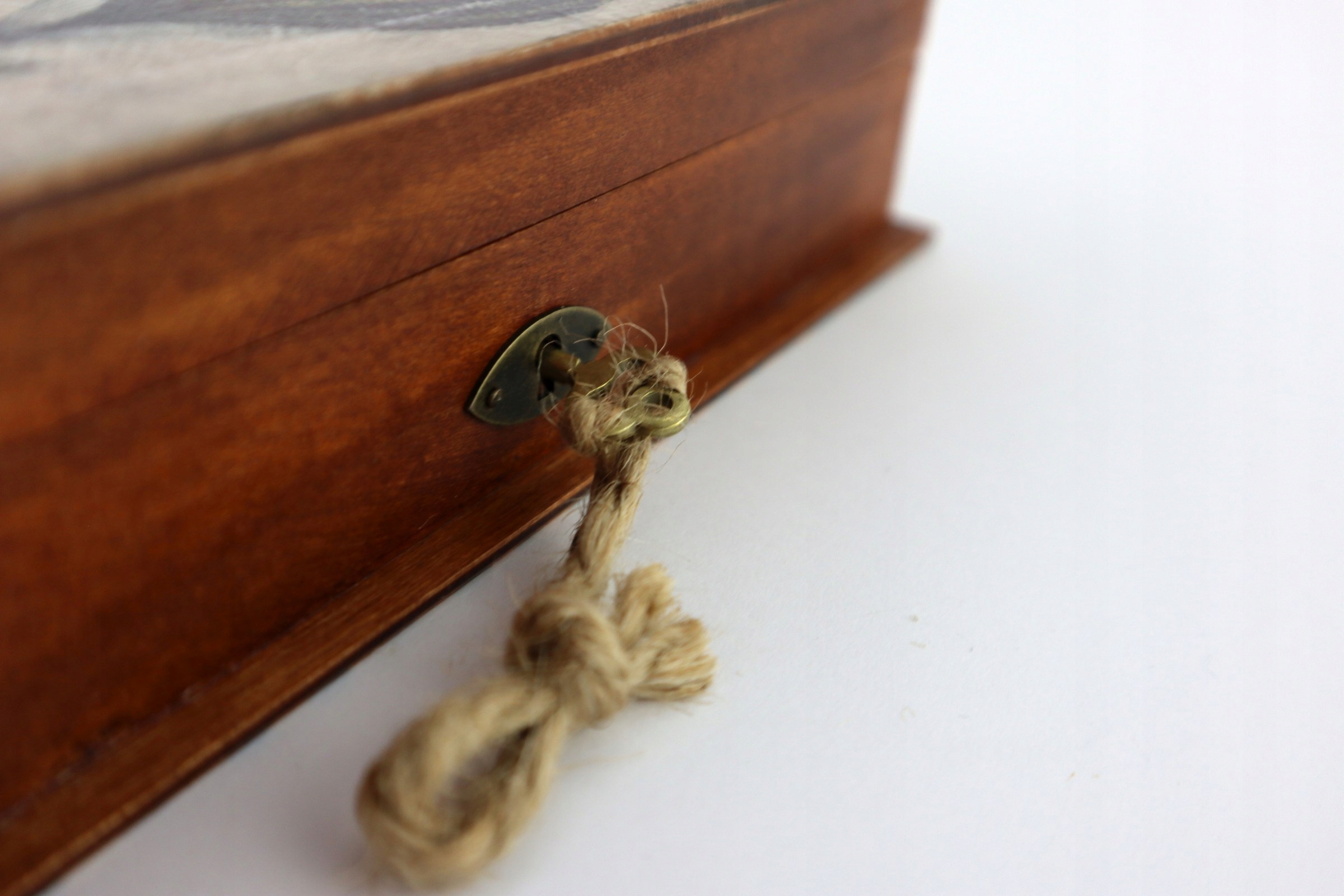 Кроме того, шкатулка украшена джутовой веревкой, которая придает ей деревенский шарм и естественный вид. Джутовый шпагат не только эстетичен, но и приятен на ощупь, придавая шкатулке дополнительную фактуру и аутентичную выразительность.