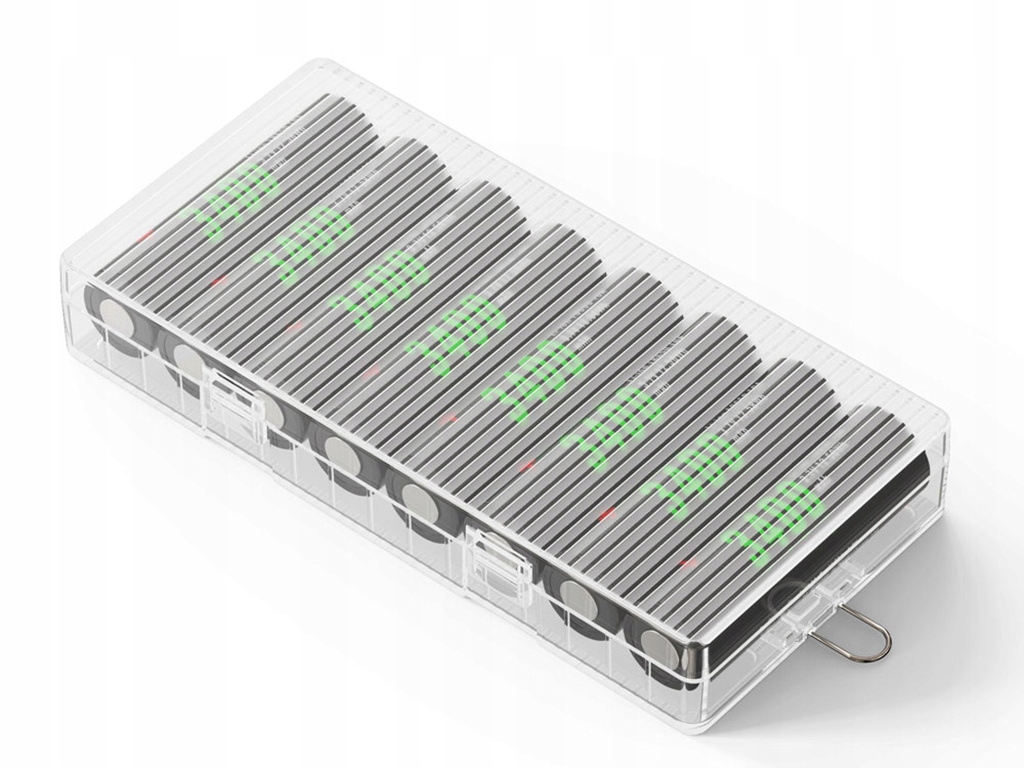 против скольжения и стабильного пластикового контейнера для безопасного хранения от 1 до 8 батарей 18650 года. В контейнере вы можете безопасно хранить батареи или батареи с максимальной длиной 71 мм и максимальным диаметром 19 мм. 18650. Это плюс для безопасности, но часто открывать коробку вам нужны вспомогательные элементы, такие как монеты. прозрачный