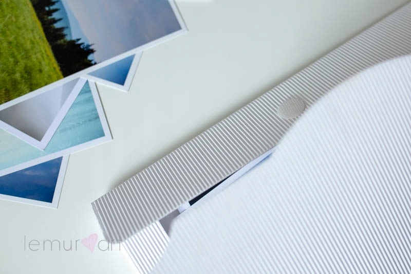 - вмещает около 10 фотографий (в зависимости от плотности бумаги), продается в комплекте с двусторонней липучкой, которую следует приклеить к внутренней части обложки и правому клапану,
