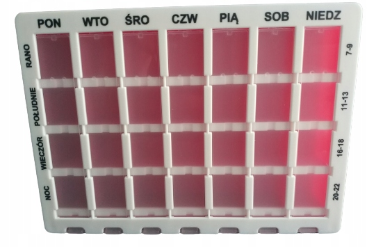 Кассета позволяет принимать лекарства в нужное время суток и в нужной дозе. Он особенно полезен пожилым и больным людям, которые не имеют возможности приготовить лекарства самостоятельно и полагаются на помощь третьих лиц.