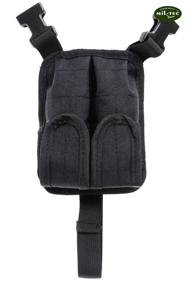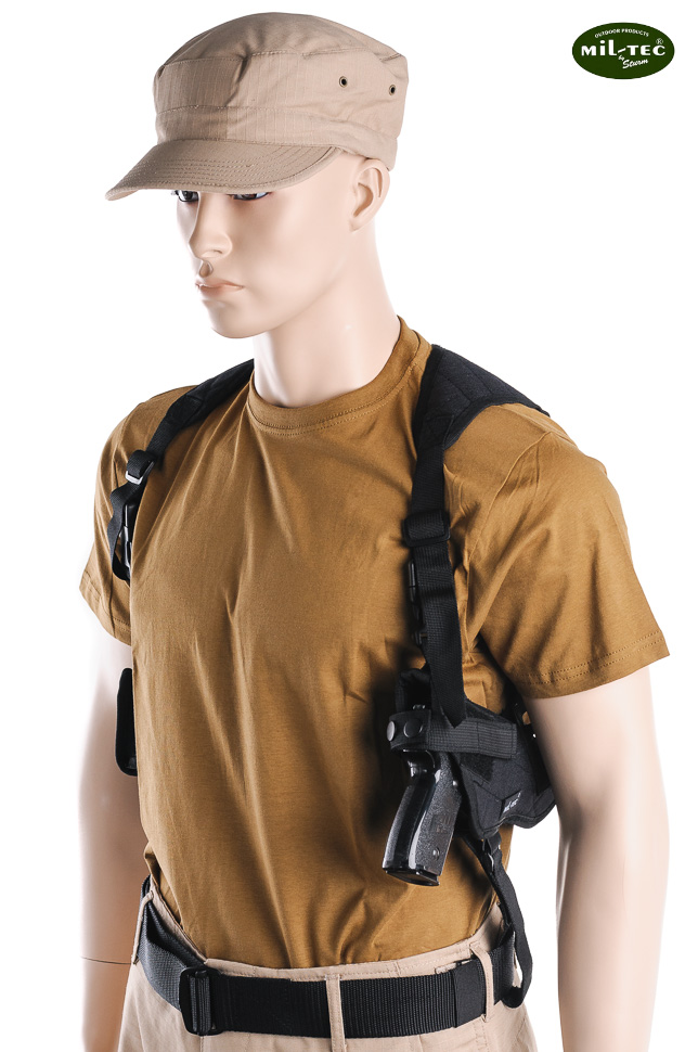 Кобура с подтяжками, подходящая для большинства типов современного огнестрельного оружия. Этот тип кобуры позволяет быстро вытащить и незаметно носить оружие. Изготовлен из прочного материала Cordura. Оснащен двумя универсальными подсумками для магазинов регулируемого размера. Удобные подтяжки прекрасно распределяют вес оружия и дополнительных боеприпасов, облицованные сеткой со стороны тела для увеличения циркуляции воздуха. Оснащенная гибкой системой переноски, мягкими ремнями и креплениями для плечевых ремней, кобура не ограничивает движения и адаптируется к положению пользователя. Благодаря использованию пряжек из АБС-пластика кобуру и сумку можно прикрепить к любой стороне тела как для левши, так и для правши. Он имеет систему крепления кобуры с помощью липучки или кнопок с возможностью сменных сторон. Внутренняя часть кобуры отделана мягкой подкладкой, что облегчает скрытие оружия.