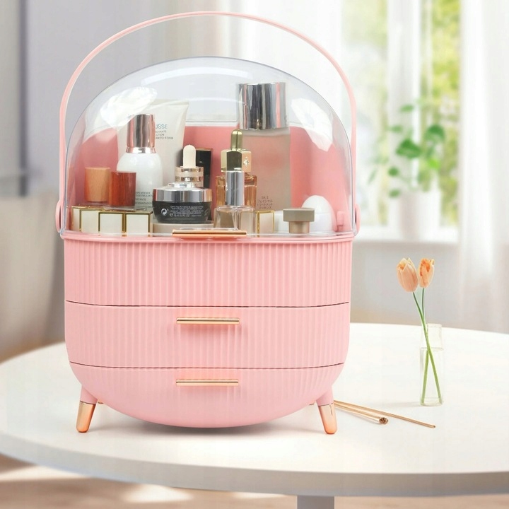 Практичный органайзер для косметики, украшений или других аксессуаров для каждой женщины. Для него характерны просторные ящики и большая витрина для духов, бальзамов или кремов. Он сохранит ваши мелкие вещи в чистоте и порядке.