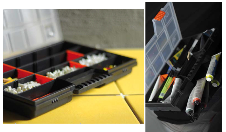 Технология закрытия означает, что при переворачивании органайзера предметы из отделений не смешиваются друг с другом.