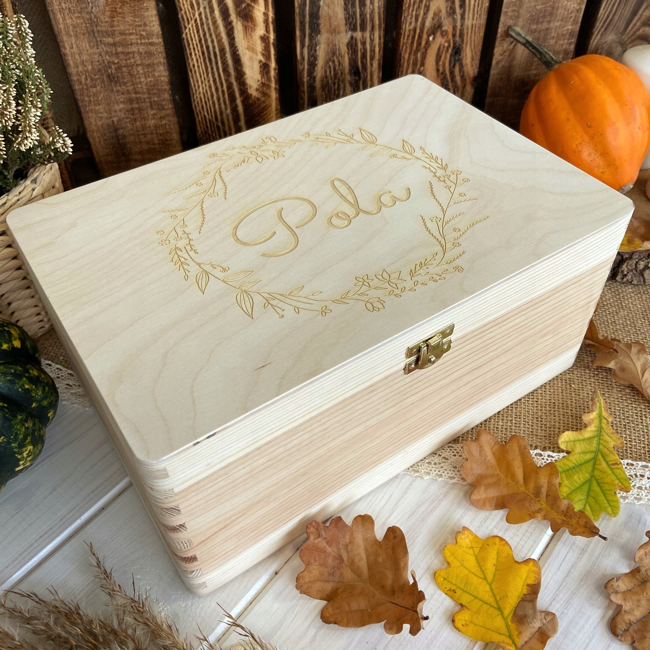 На коробке имеется гравировка в виде нежных цветов и имени ребенка. (При оформлении заказа в сообщении продавцу, пожалуйста, укажите имя ребенка, на котором будет выгравирована)