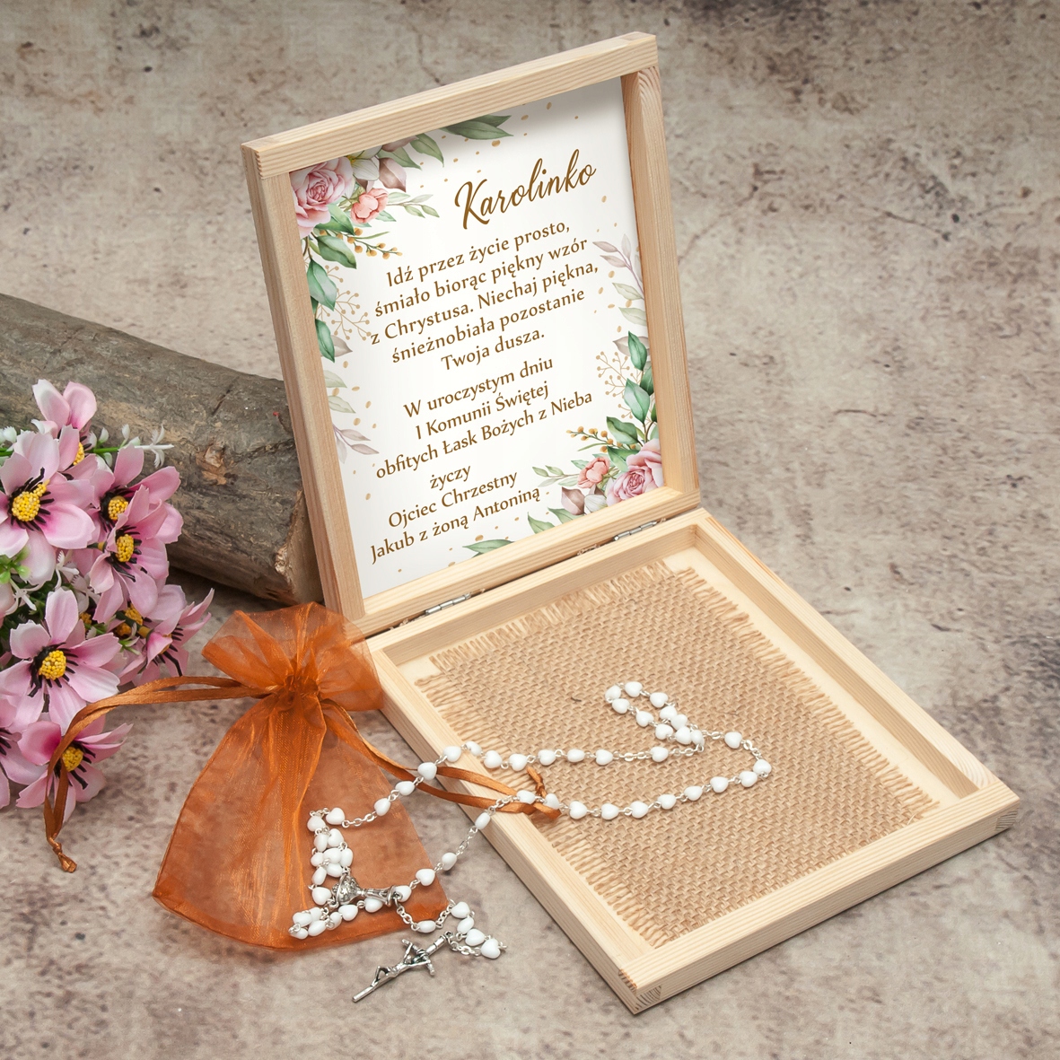 коробка ЧЕТКИ СЕРДЦ сувенир и пожелания к Первому Причастию