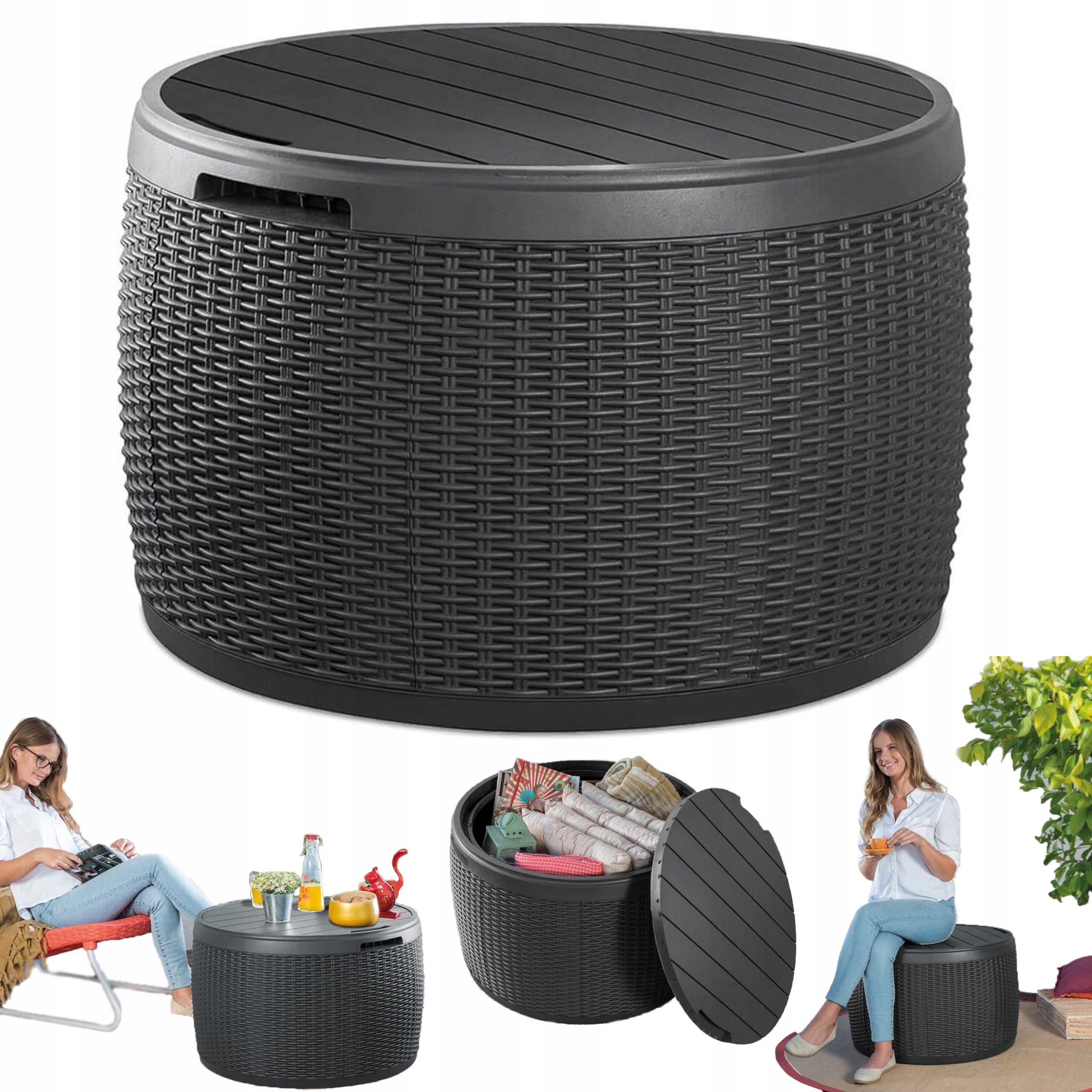 КРУГЛЫЙ садовый ящик для балкона Keter Circa Rattan Storage Box 140L Стол