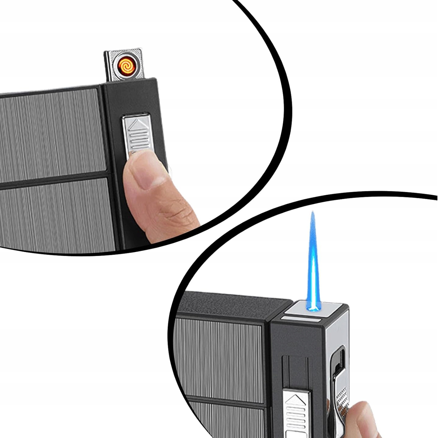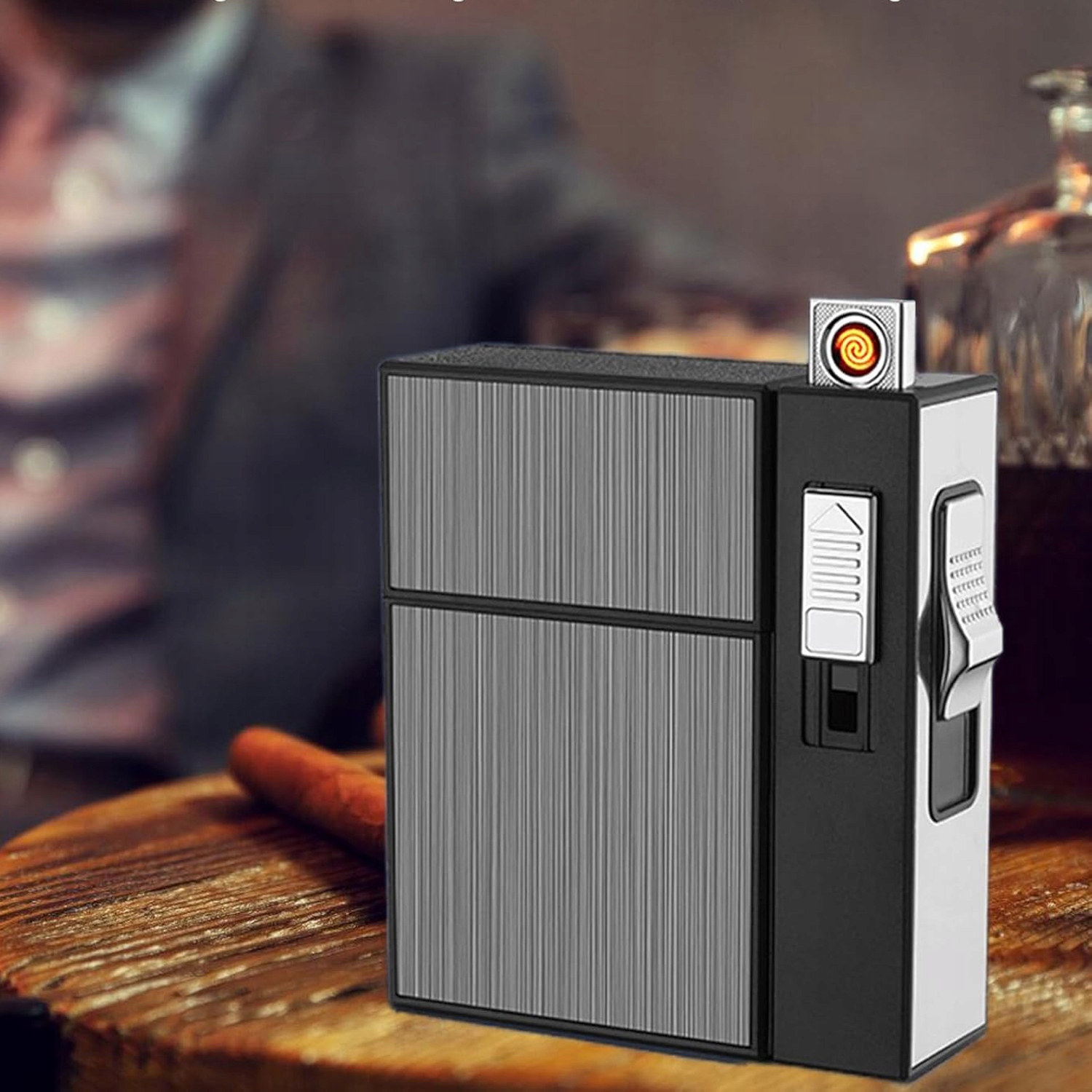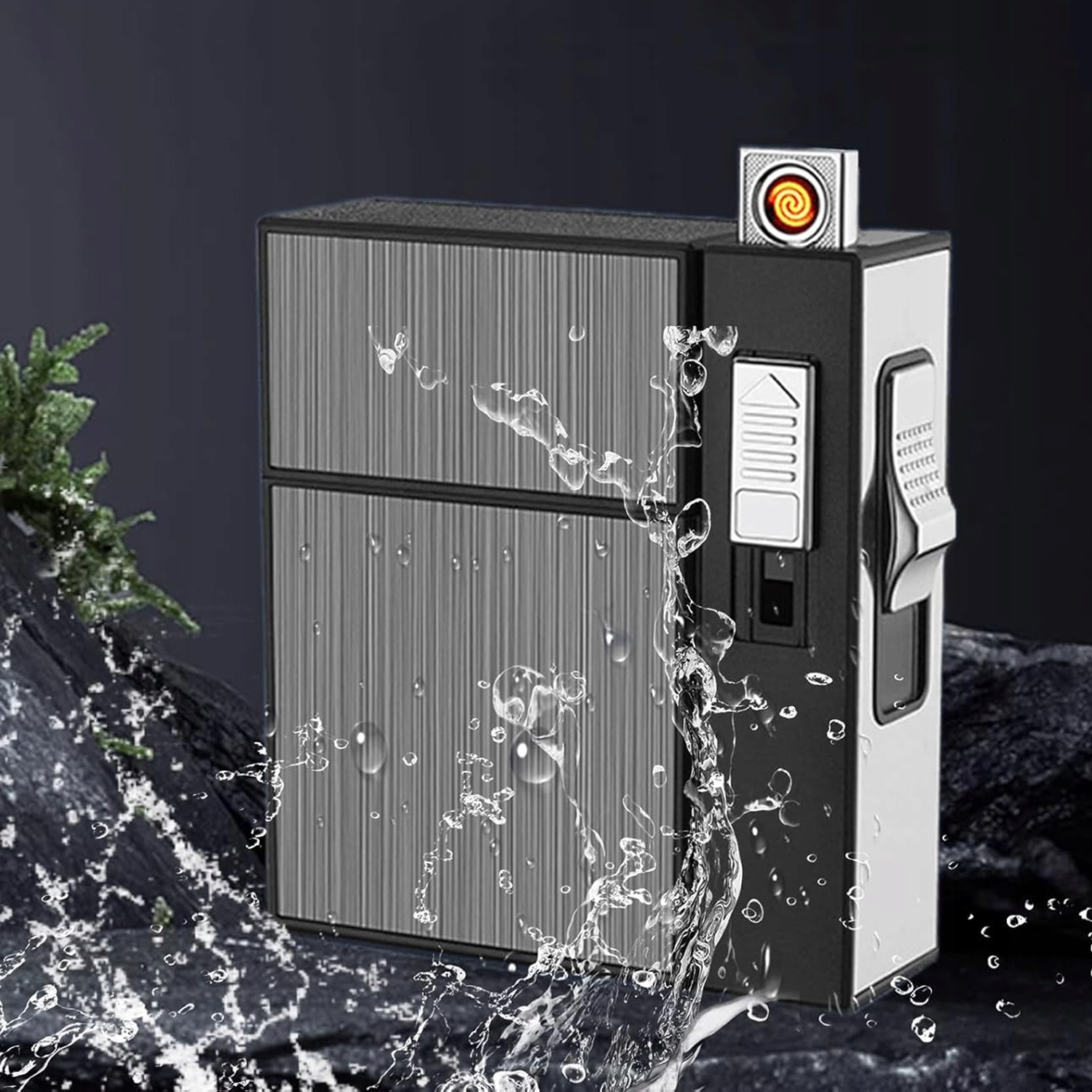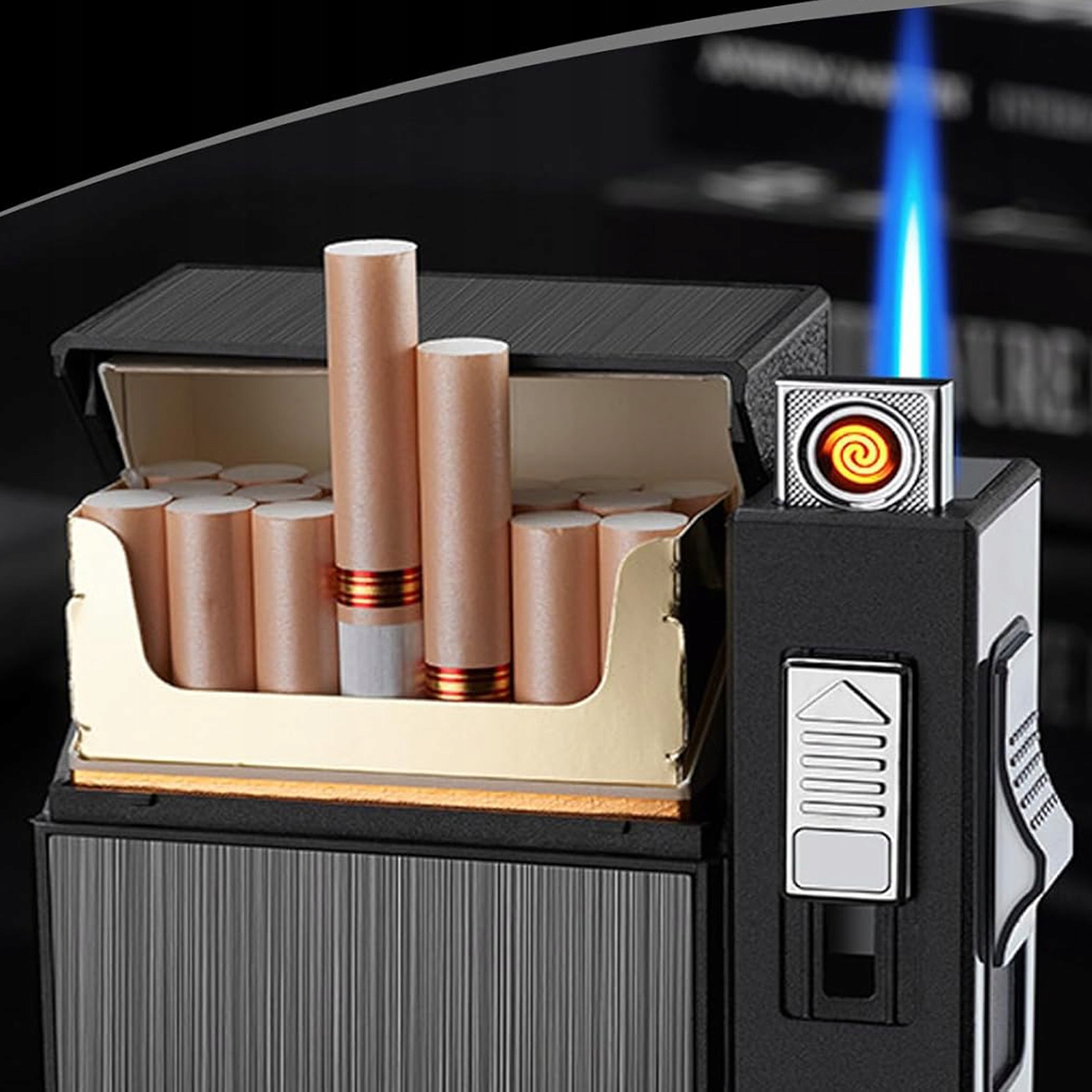 - Этот сигаретный чехол с более легкой стороной оснащен ветрозащитным более легким, что облегчает воспламенение сигарет даже в ветреных условиях.