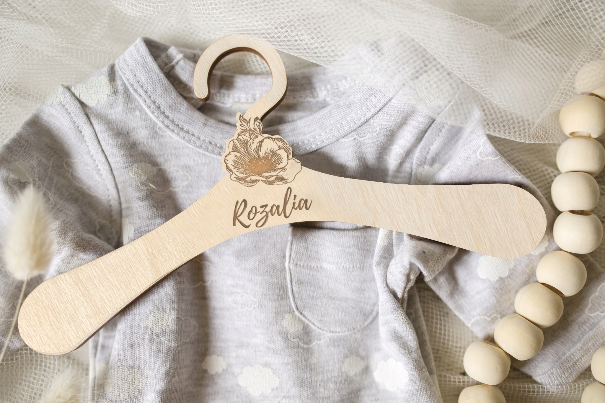 - деревянная вешалка с выгравированным именем;