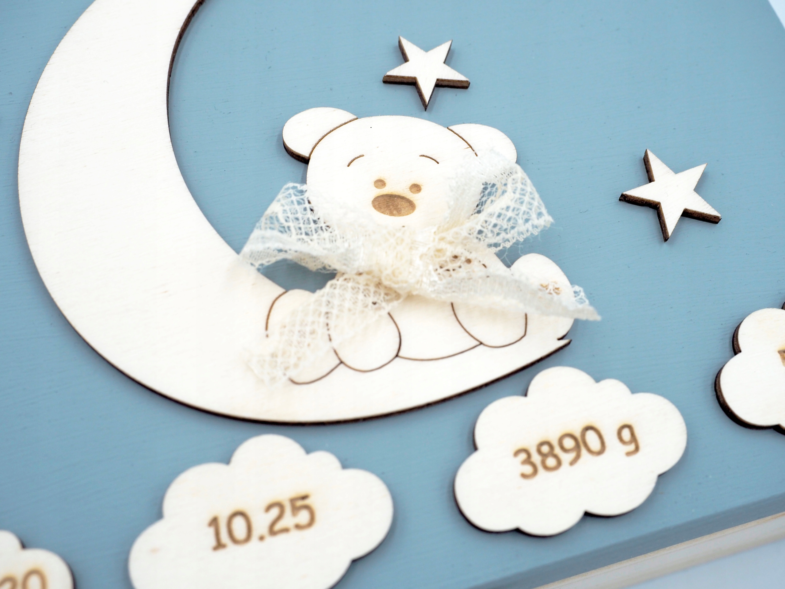 - декоративный декор в виде плюшевый мишка - выгравированный текст в облаках