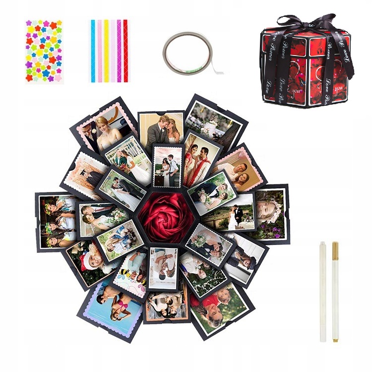 Взрывная коробка — отличная альтернатива обычным фотоальбогам. Создайте сами что-то удивительное, чего никто не ожидает. Коробочки уже собраны! Все, что вам нужно, это ваши фотографии!
